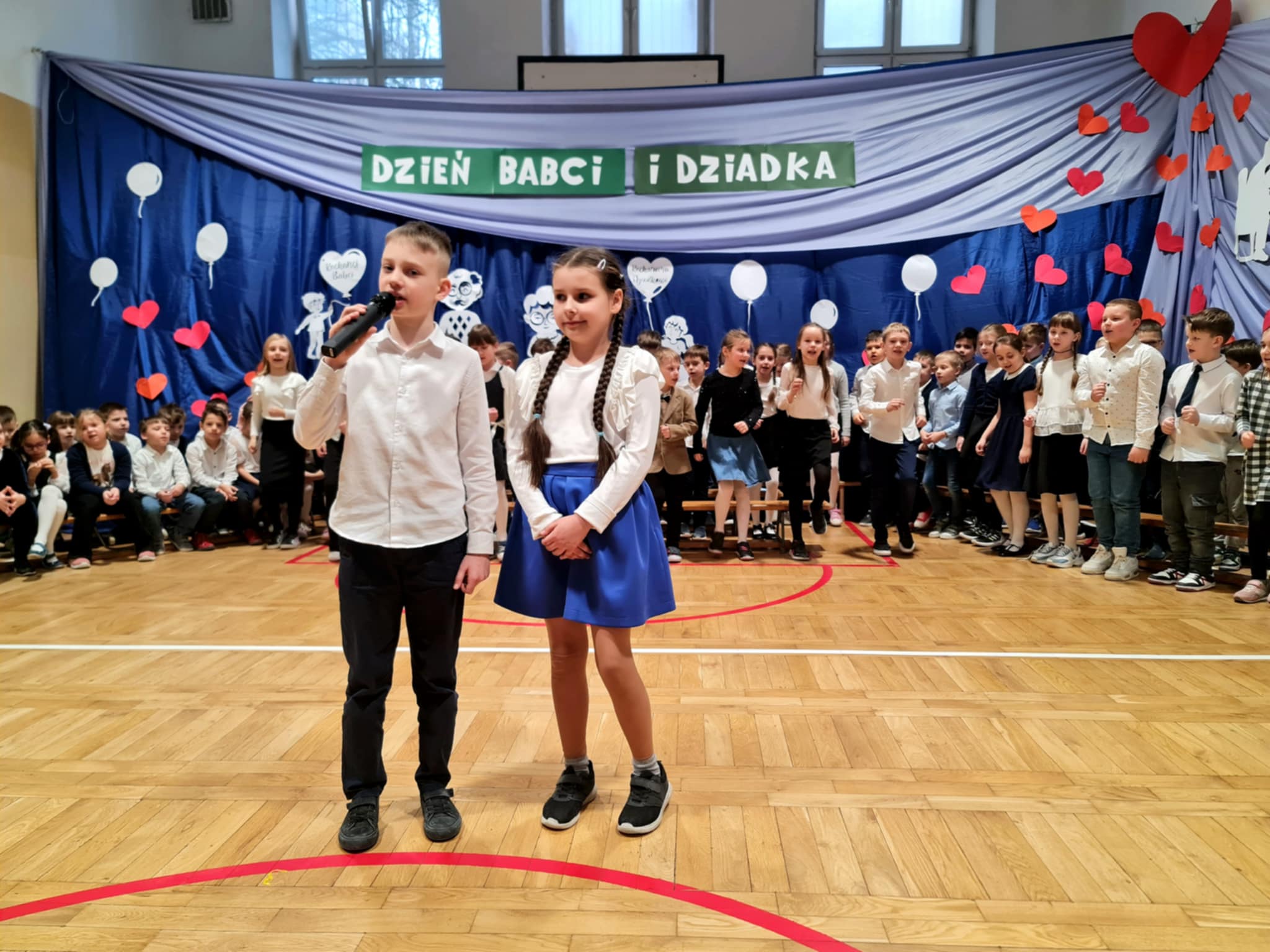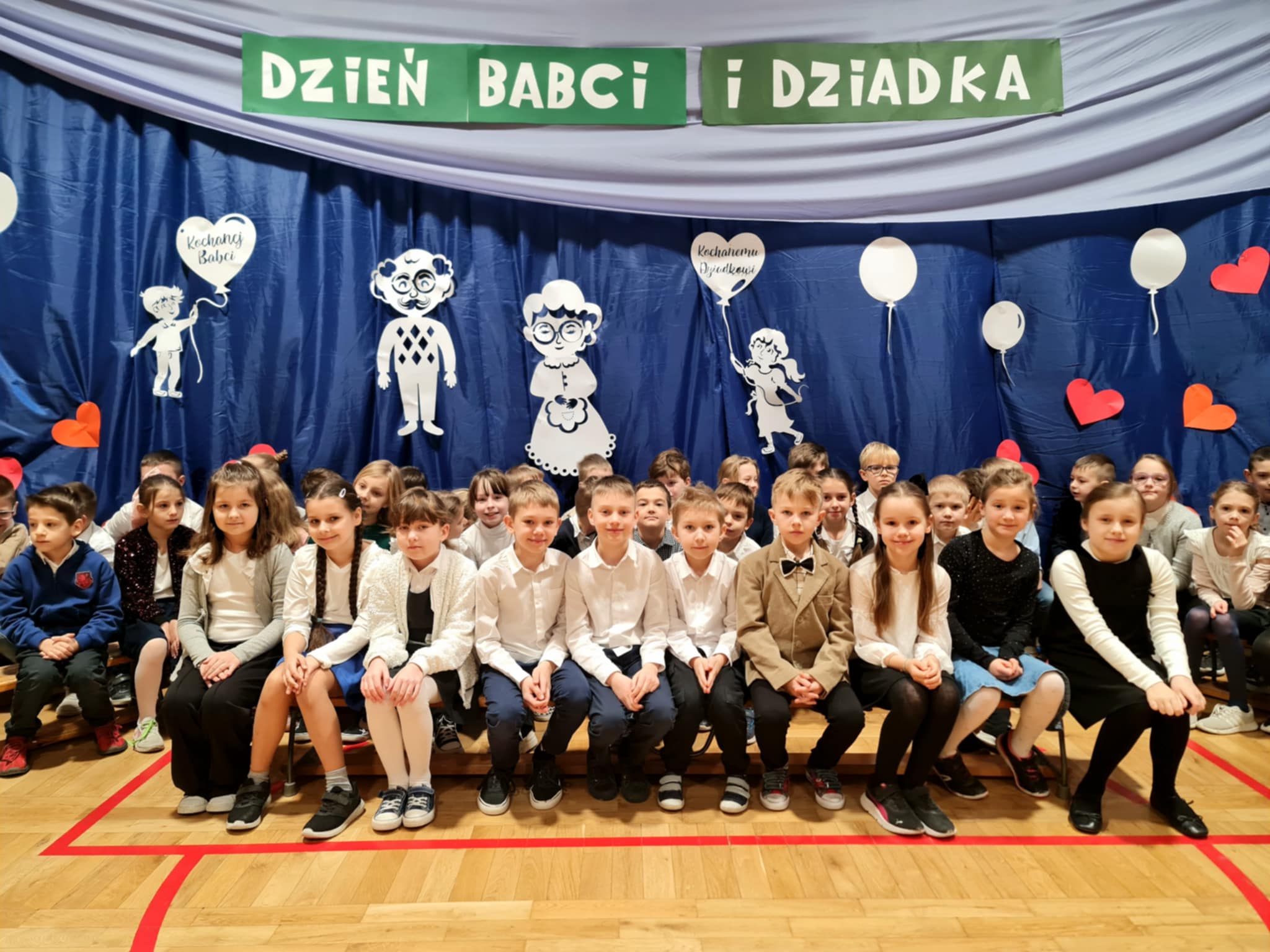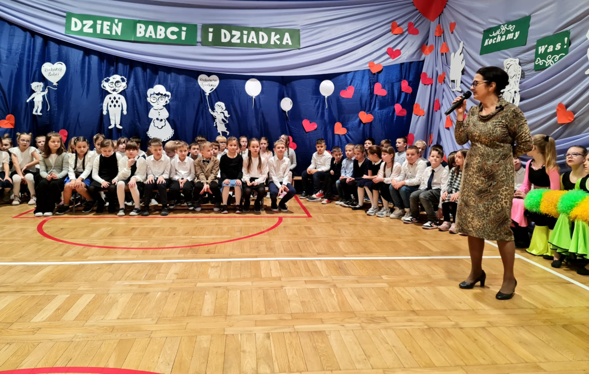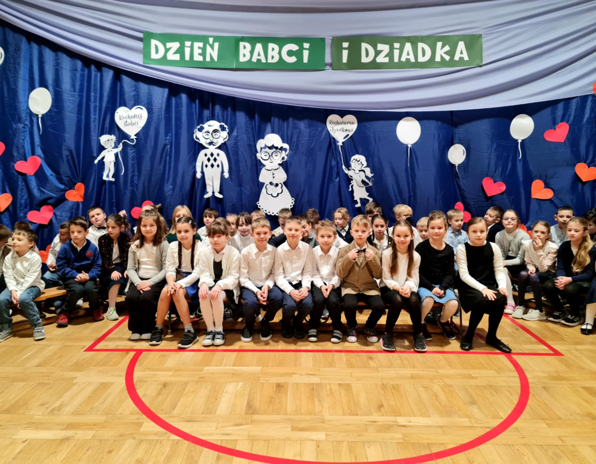 Dnia 29 stycznia 2026 r. o godz. 10.00 w dużej sali gimnastycznej odbyła się wyjątkowa uroczystość z okazji Dnia Babci i Dziadka - przygotowana przez uczniów klas I i II. Rozpoczęła się powitaniem zgromadzonych gości oraz zaproszeniem na część artystyczną. Dzień Babci i Dziadka to bowiem szczególna okazja, by wyrazić wdzięczność tym, którzy są skarbnicą rodzinnych wspomnień, mądrości i tradycji. Babcie i Dziadkowie uczą nas cierpliwości, życzliwości, szacunku do drugiego człowieka oraz pokazują, jak ważne w życiu są miłość, bliskość i wzajemne wsparcie. Zawsze mają dla nas dobre słowo, uśmiech i otwarte serce, dając poczucie bezpieczeństwa i bezwarunkowej akceptacji.