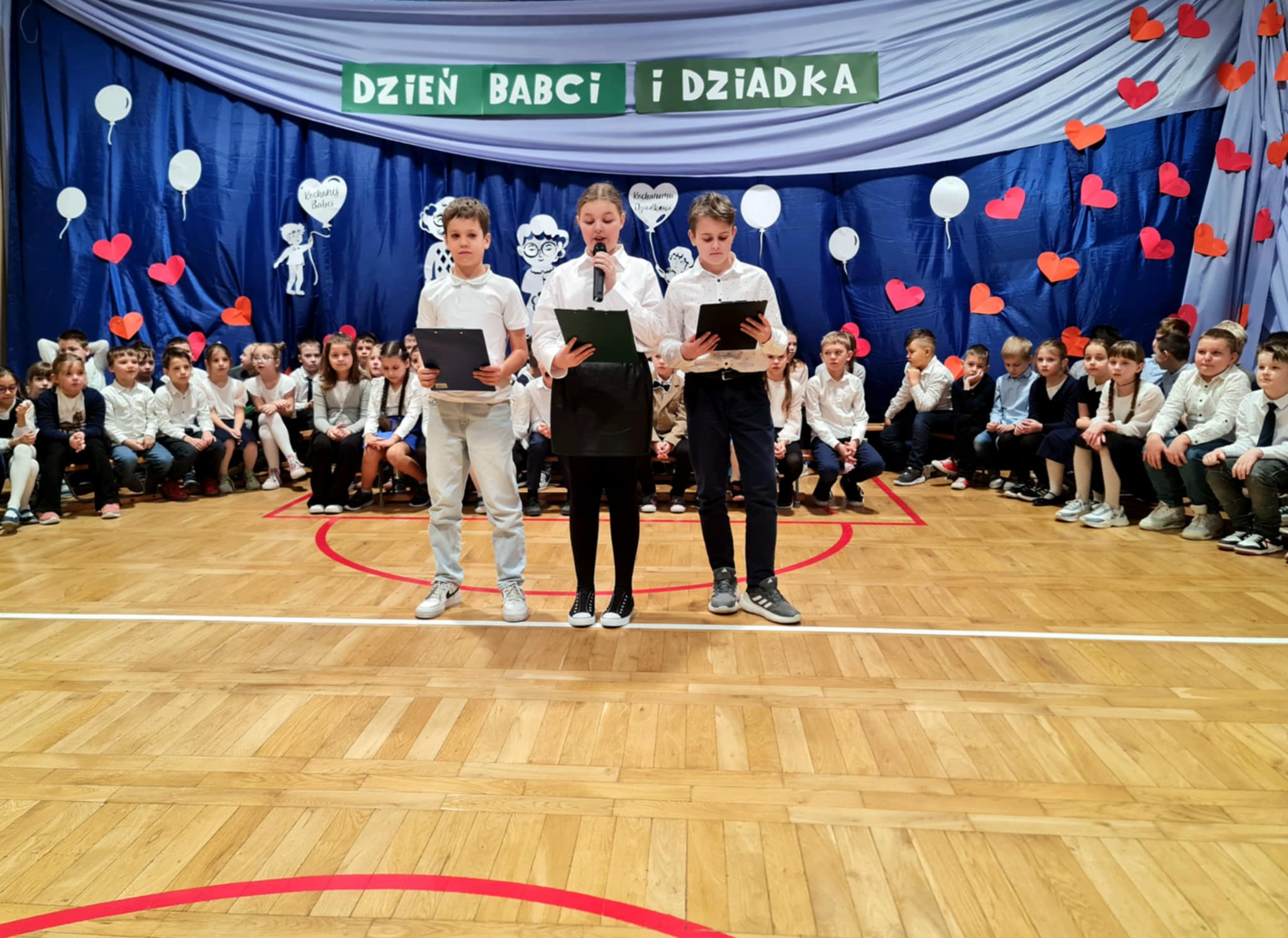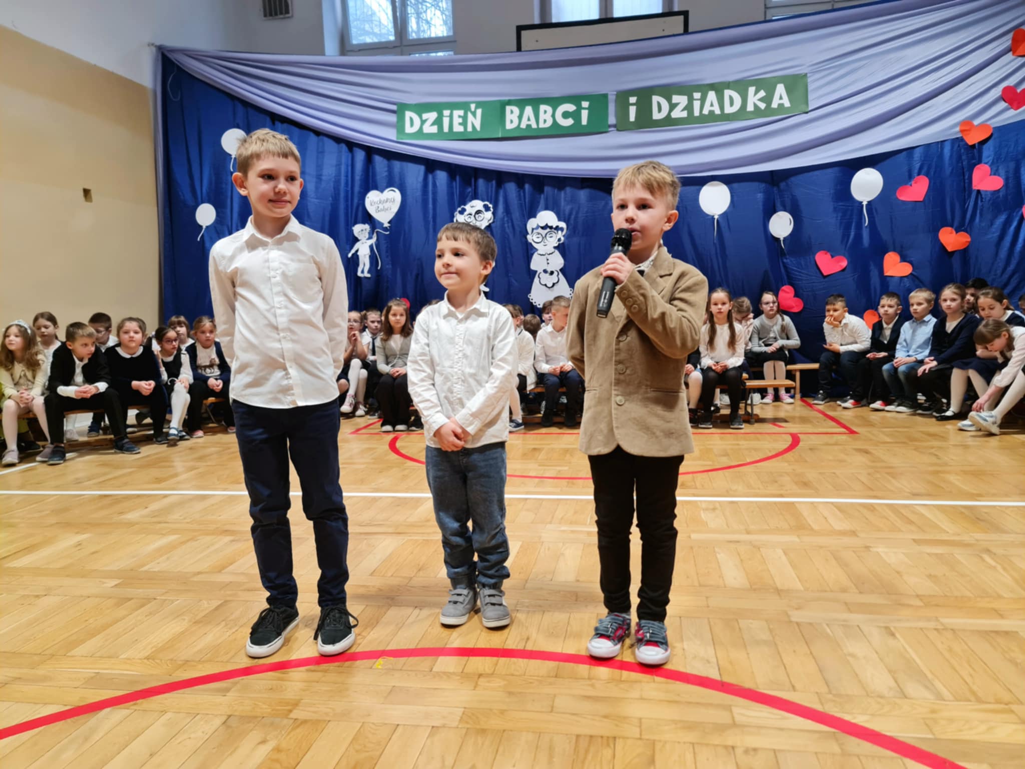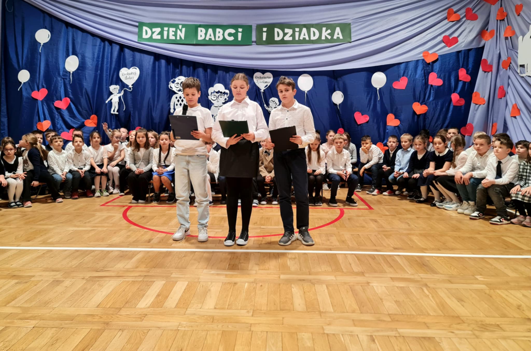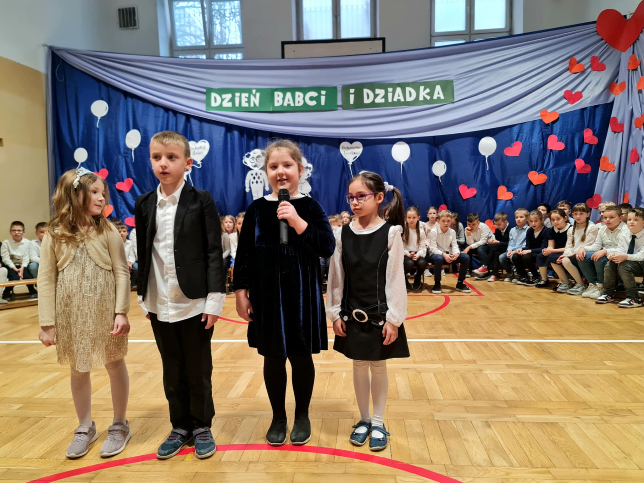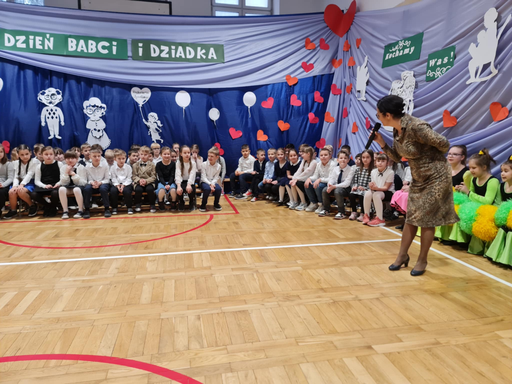 Dnia 29 stycznia 2026 r. o godz. 10.00 w dużej sali gimnastycznej odbyła się wyjątkowa uroczystość z okazji Dnia Babci i Dziadka - przygotowana przez uczniów klas I i II. Rozpoczęła się powitaniem zgromadzonych gości oraz zaproszeniem na część artystyczną. Dzień Babci i Dziadka to bowiem szczególna okazja, by wyrazić wdzięczność tym, którzy są skarbnicą rodzinnych wspomnień, mądrości i tradycji. Babcie i Dziadkowie uczą nas cierpliwości, życzliwości, szacunku do drugiego człowieka oraz pokazują, jak ważne w życiu są miłość, bliskość i wzajemne wsparcie. Zawsze mają dla nas dobre słowo, uśmiech i otwarte serce, dając poczucie bezpieczeństwa i bezwarunkowej akceptacji.