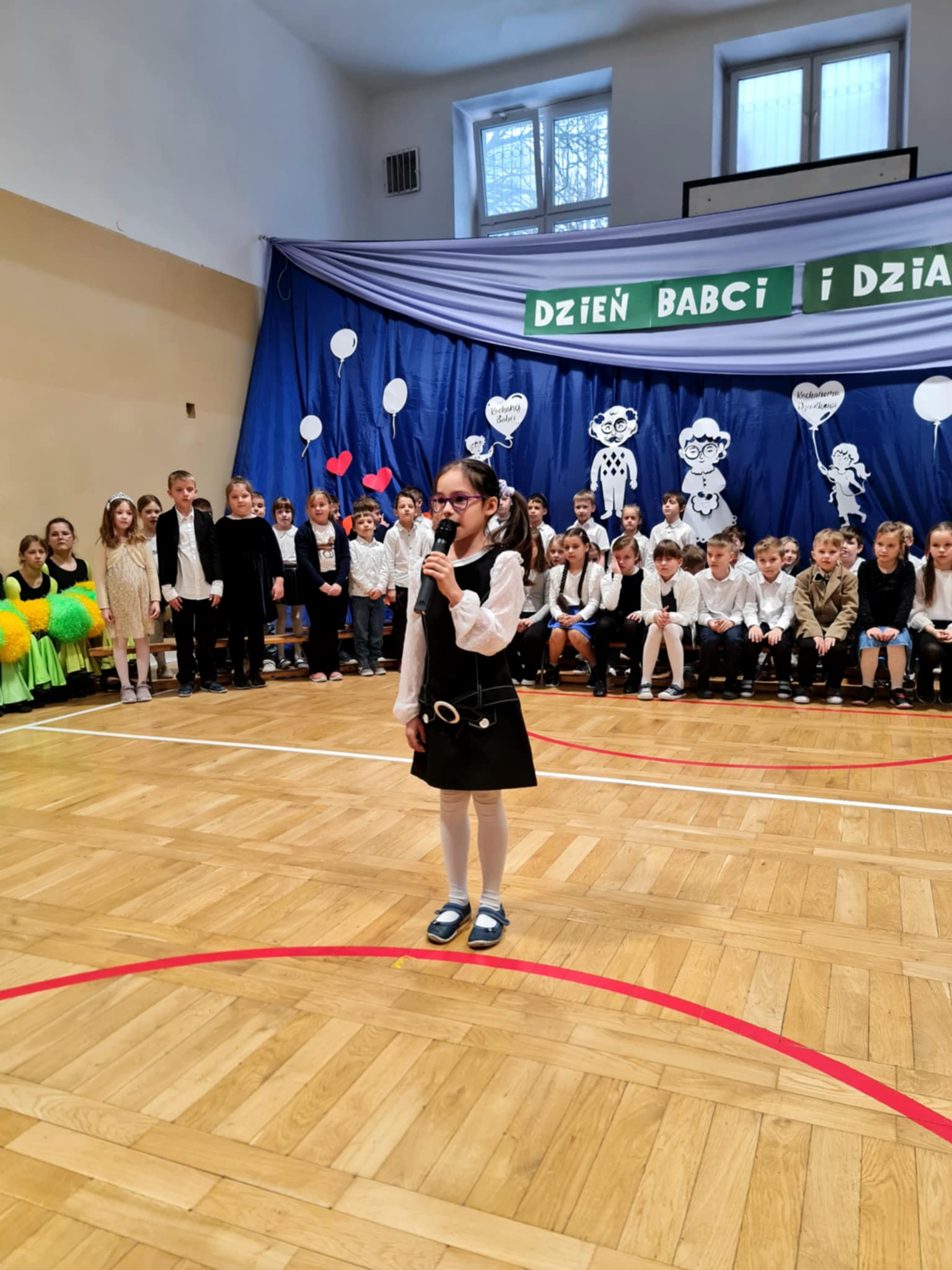 Część artystyczna, przygotowana przez uczniów klas I i II, dostarczyła wielu wzruszeń. Dzieci zaprezentowały piosenki, wiersze oraz występy taneczne, które zostały nagrodzone gromkimi brawami i uśmiechami na twarzach zaproszonych Gości. Następnie głos zabrała Pani Dyrektor, dziękując Uczniom i Nauczycielom za przygotowanie uroczystości oraz składając serdeczne życzenia wszystkim Babciom i Dziadkom.