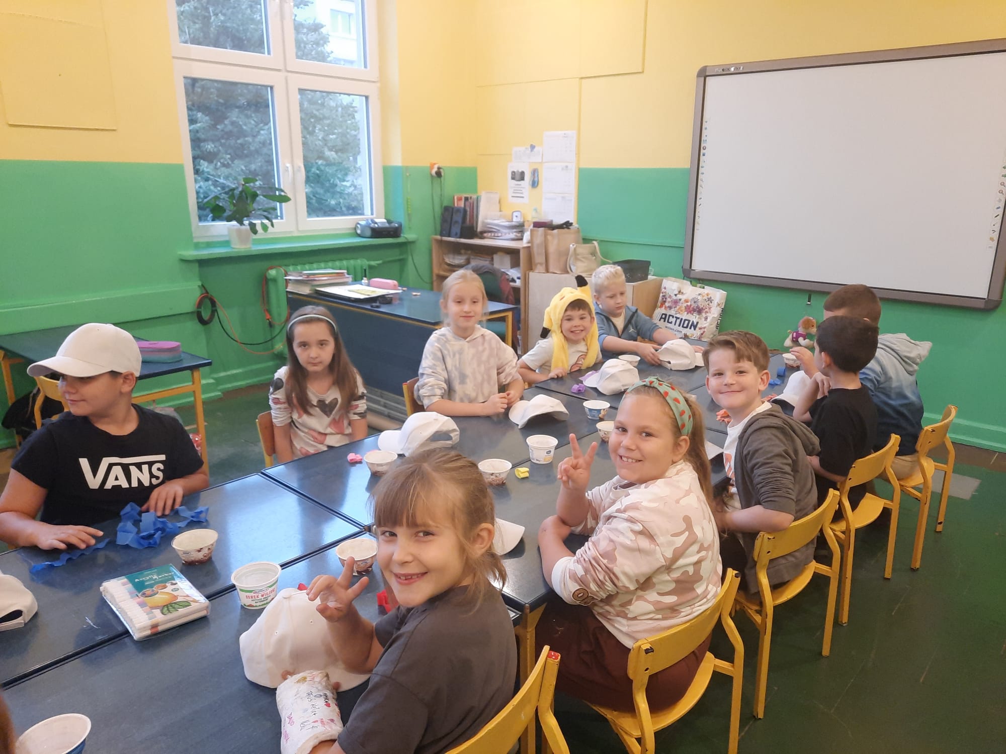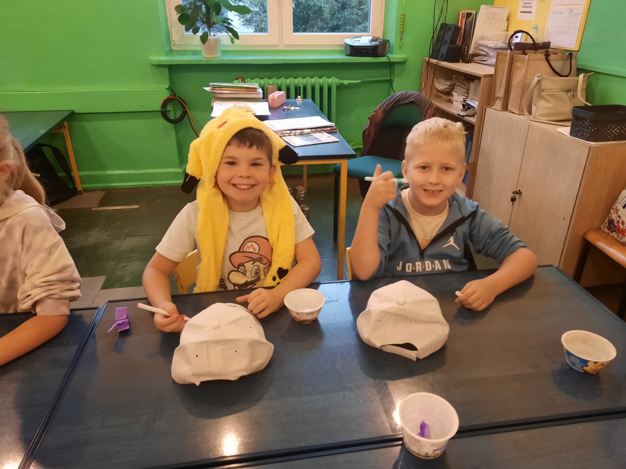 Uczniowie klasy 2c w Dniu Chłopaka uczestniczyli w warsztatach kolorowania czapek. Zajęciom towarzyszyła atmosfera integracji. Dzieci cieszyły się, że mogą samodzielnie pomalować swoje czapki.