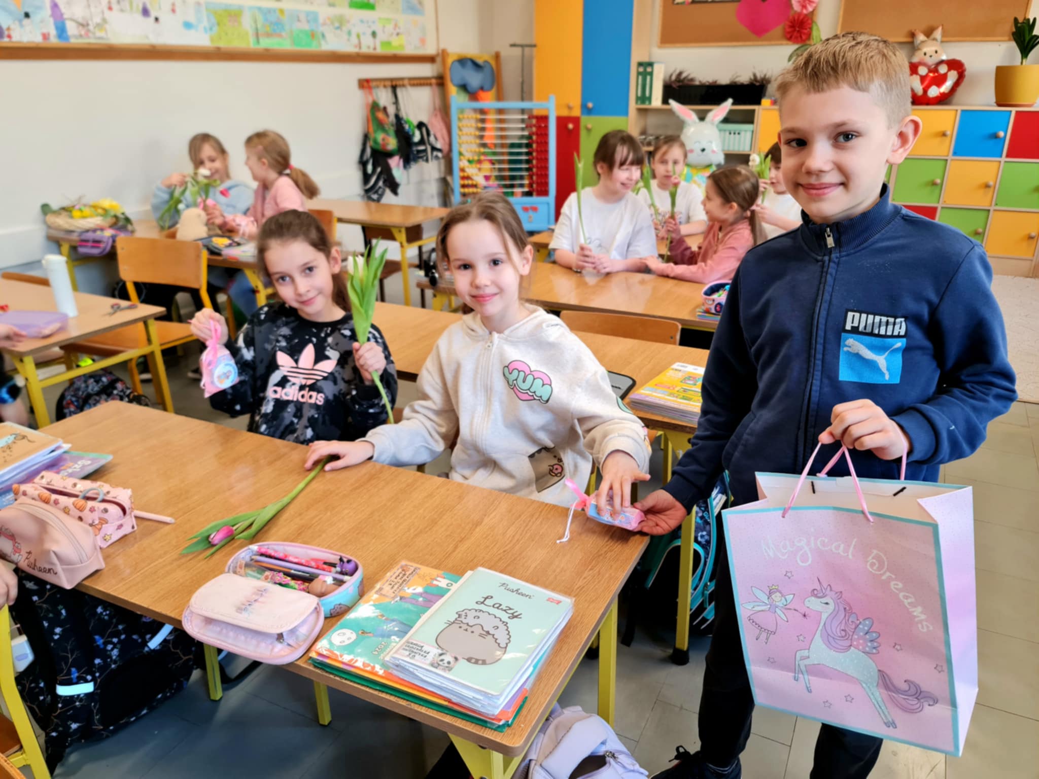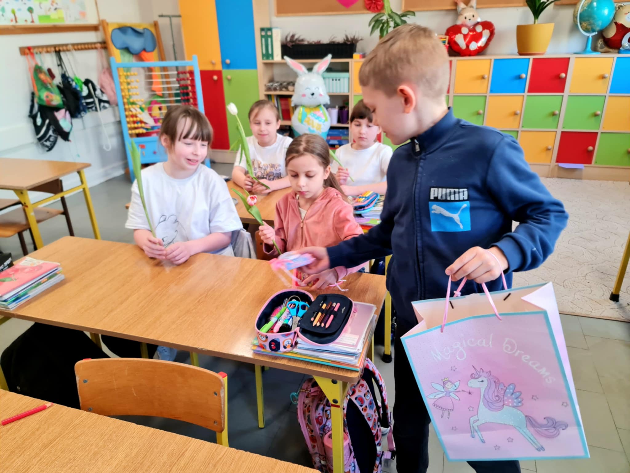 W naszej klasie 2b obchodziliśmy Dzień Kobiet w bardzo miłej i serdecznej atmosferze. Chłopcy pamiętali o swoich koleżankach i przygotowali dla nich drobne niespodzianki – każda dziewczynka otrzymała kwiatka oraz mały, uroczy upominek.