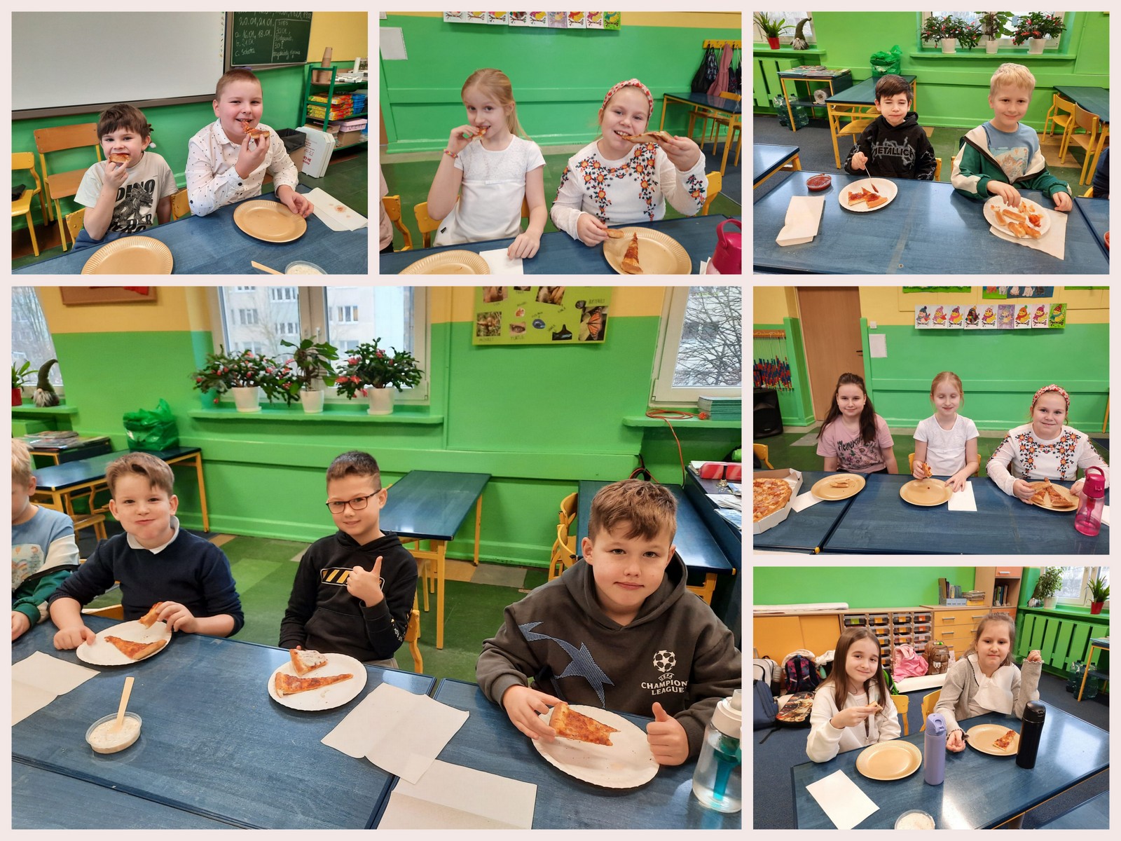 W klasie 2c uczniowie tuż przed feriami świętowali Międzynarodowy Dzień Pizzy (przypadający na 9 lutego). W tym dniu dzieci zapoznały się z historią i różnorodnością tego dania. Uczniowie mieli okazję rozwijać swoje zainteresowania kulinarne, umiejętności współpracy w grupie, a także integrowali się poprzez swobodne rozmowy dotyczące ich zainteresowań. Wszystkim taka forma urozmaiconych zajęć bardzo się podobała!