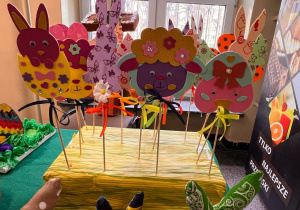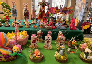 Na stoiskach można było znaleźć m.in. ozdoby świąteczne, zajączki, koszyczki, kurki, stroiki oraz wiele innych kreatywnych wyrobów. Wszystkie prace zachwycały pomysłowością, starannością wykonania oraz wprowadzały w radosny, świąteczny nastrój.