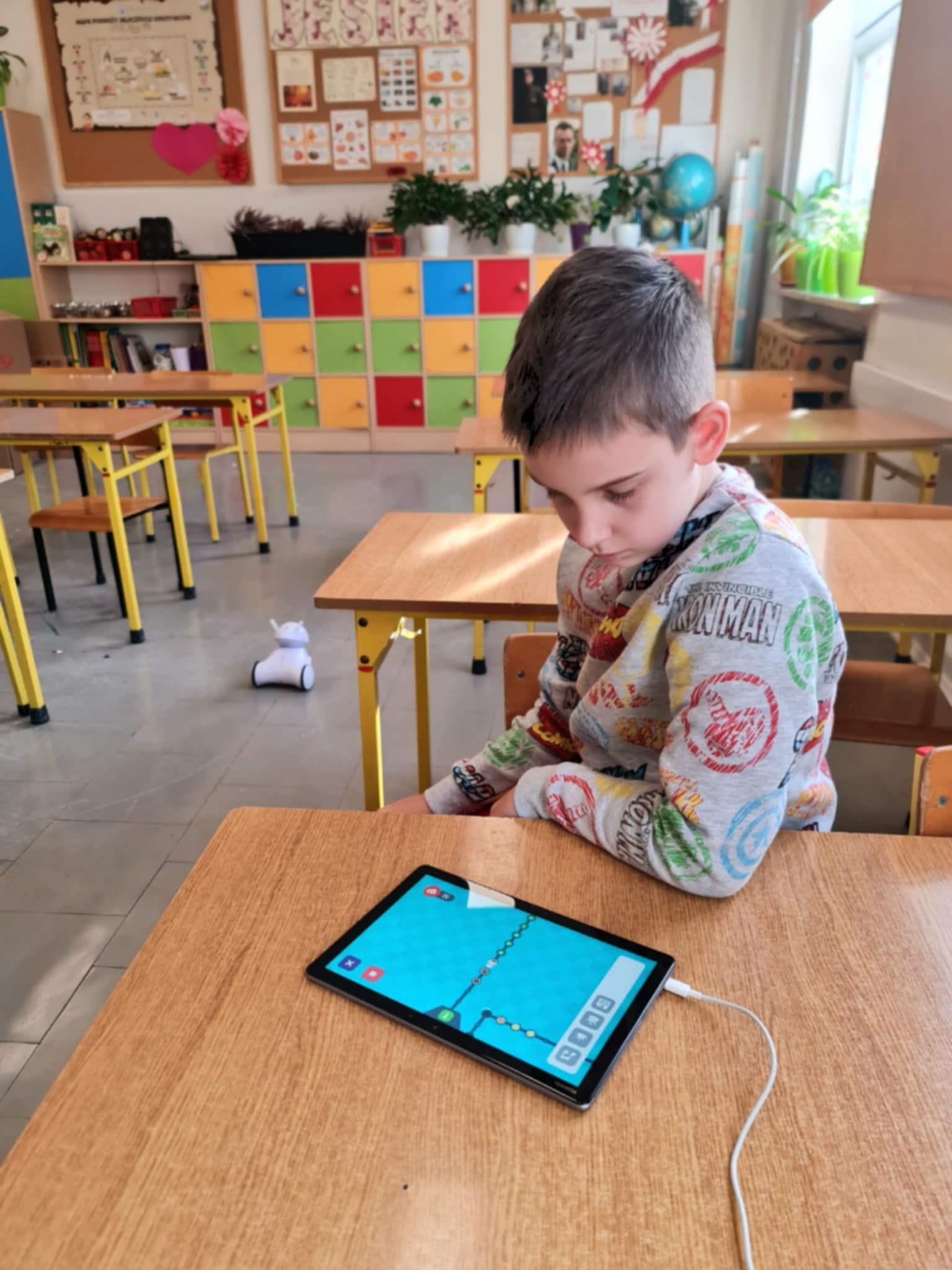 Podczas zajęć dodatkowych z uczniem wykorzystano robota Photon Edu oraz tablet zakupiony w ramach Programu Laboratoria Przyszłości. Zajęcia miały na celu m.in.: kształtowanie motoryki małej.