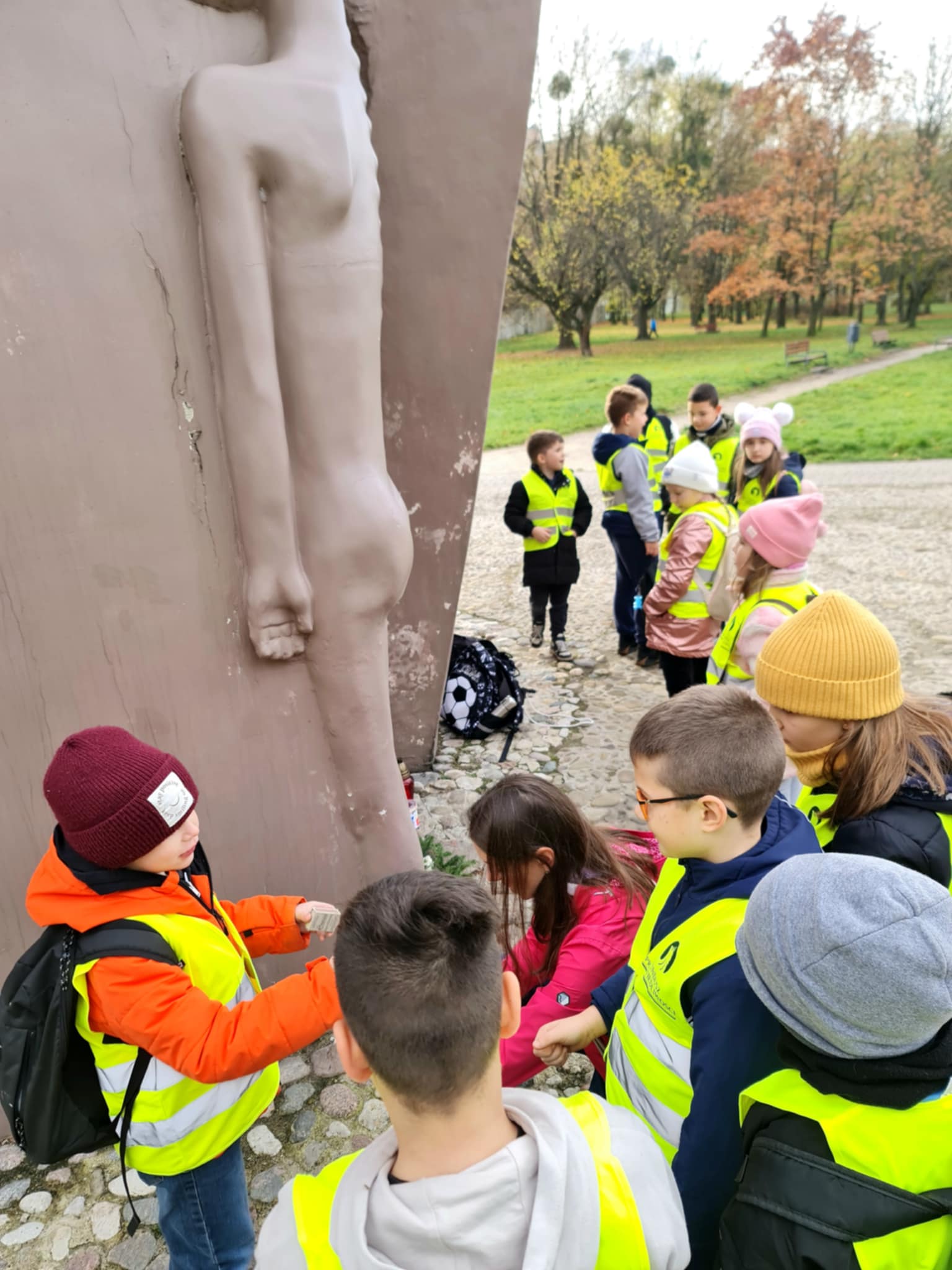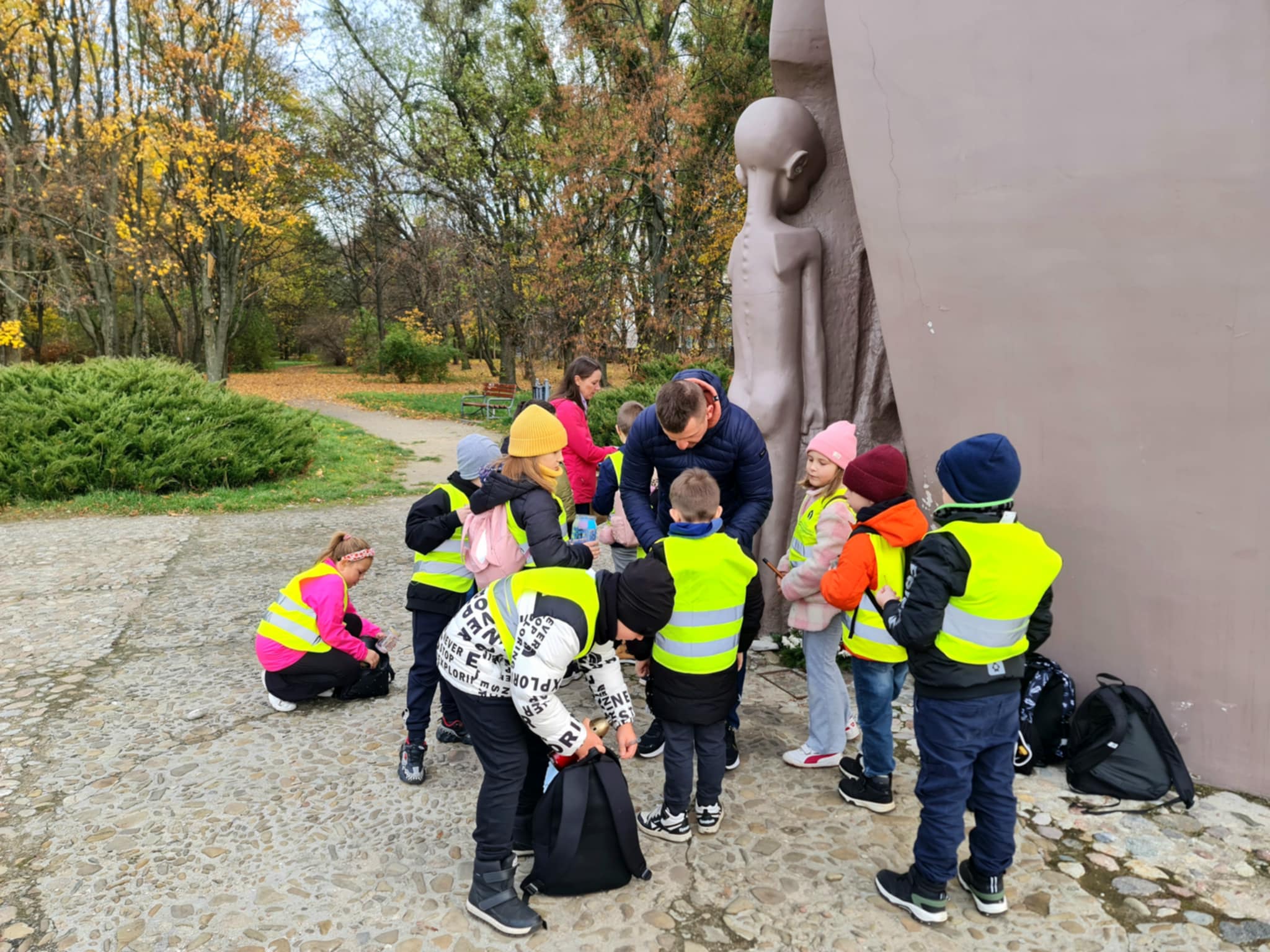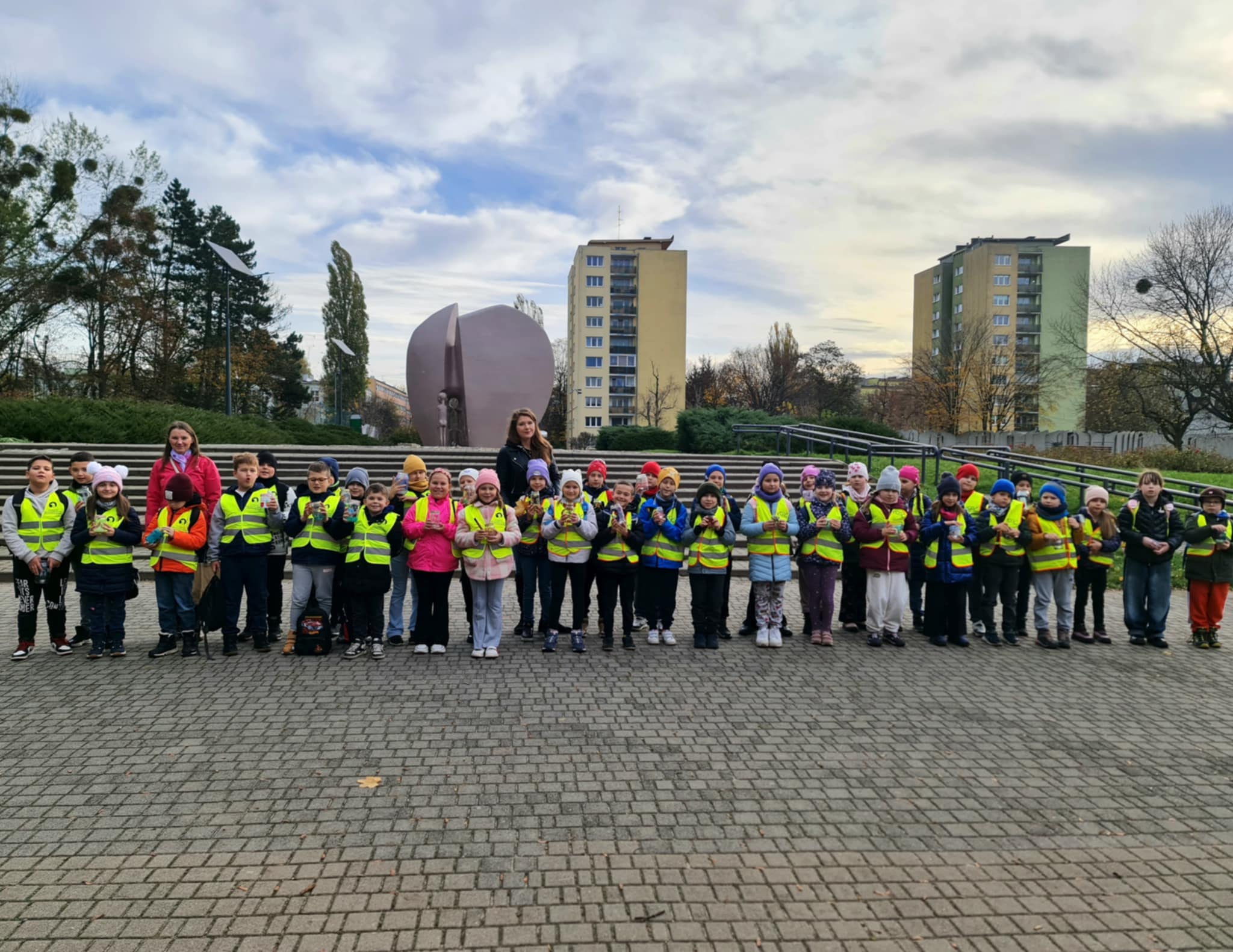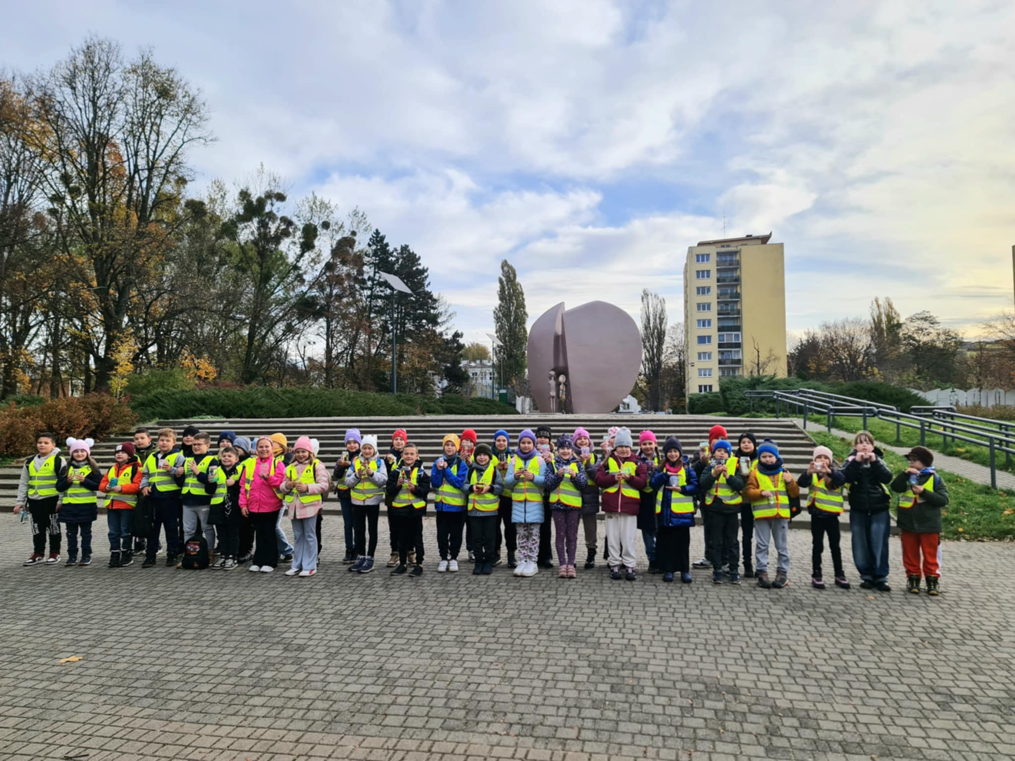 W dniu 30 października, tuż przed Dniem Wszystkich Świętych, uczniowie klas 2b i 2c (wraz z wychowawczyniami p. Małgorzatą Lipińską, p. Pauliną Wardęcką oraz p. Konradem Żaczkiem) wybrali się na spacer do Parku Szarych Szeregów. Pod Pomnikiem Pękniętego Serca (upamiętniającym tragiczne losy dzieci, które podczas II wojny światowej zostały pozbawione dzieciństwa i wolności) uczniowie złożyli własnoręcznie wykonane, autorskie znicze.