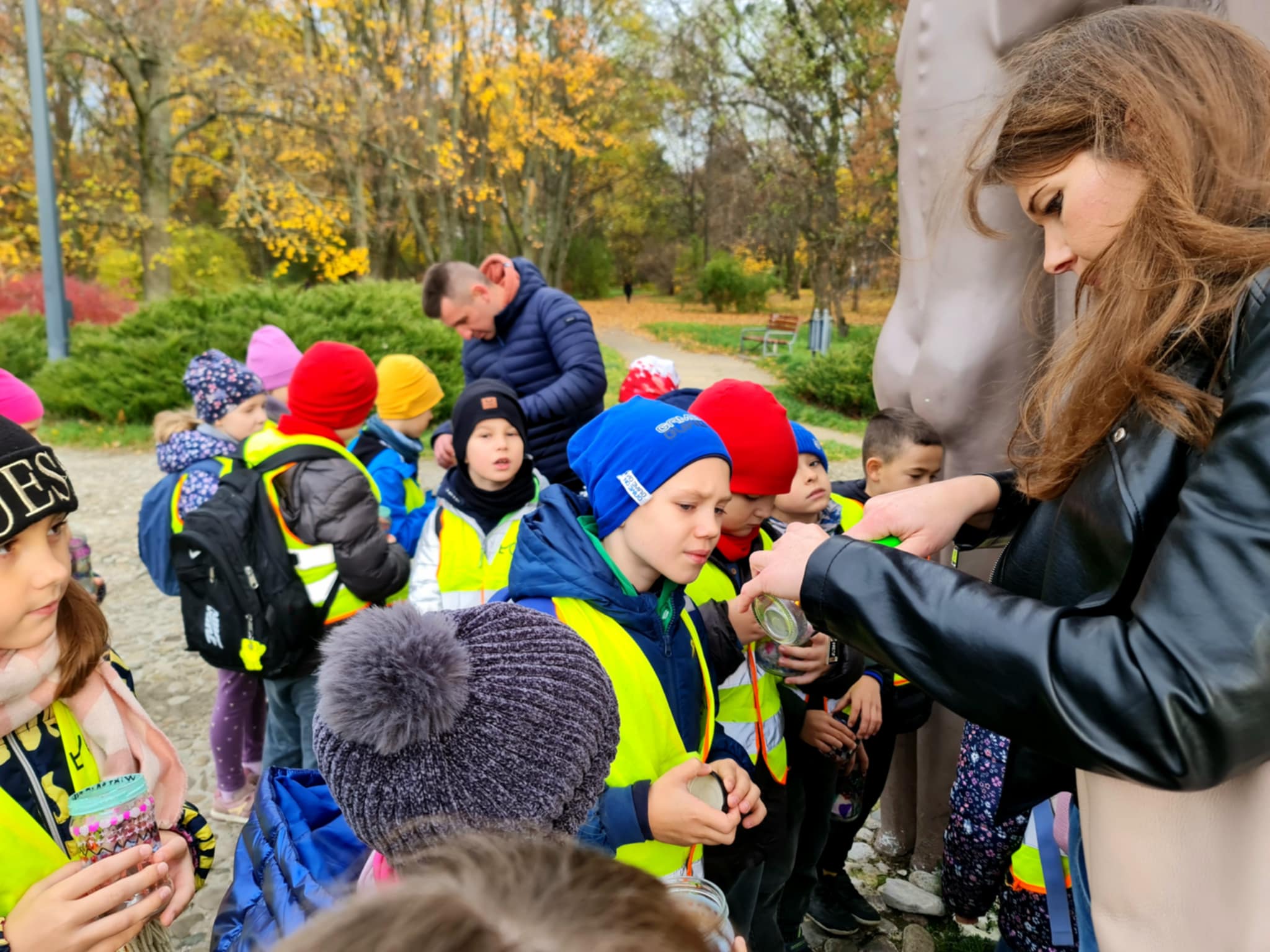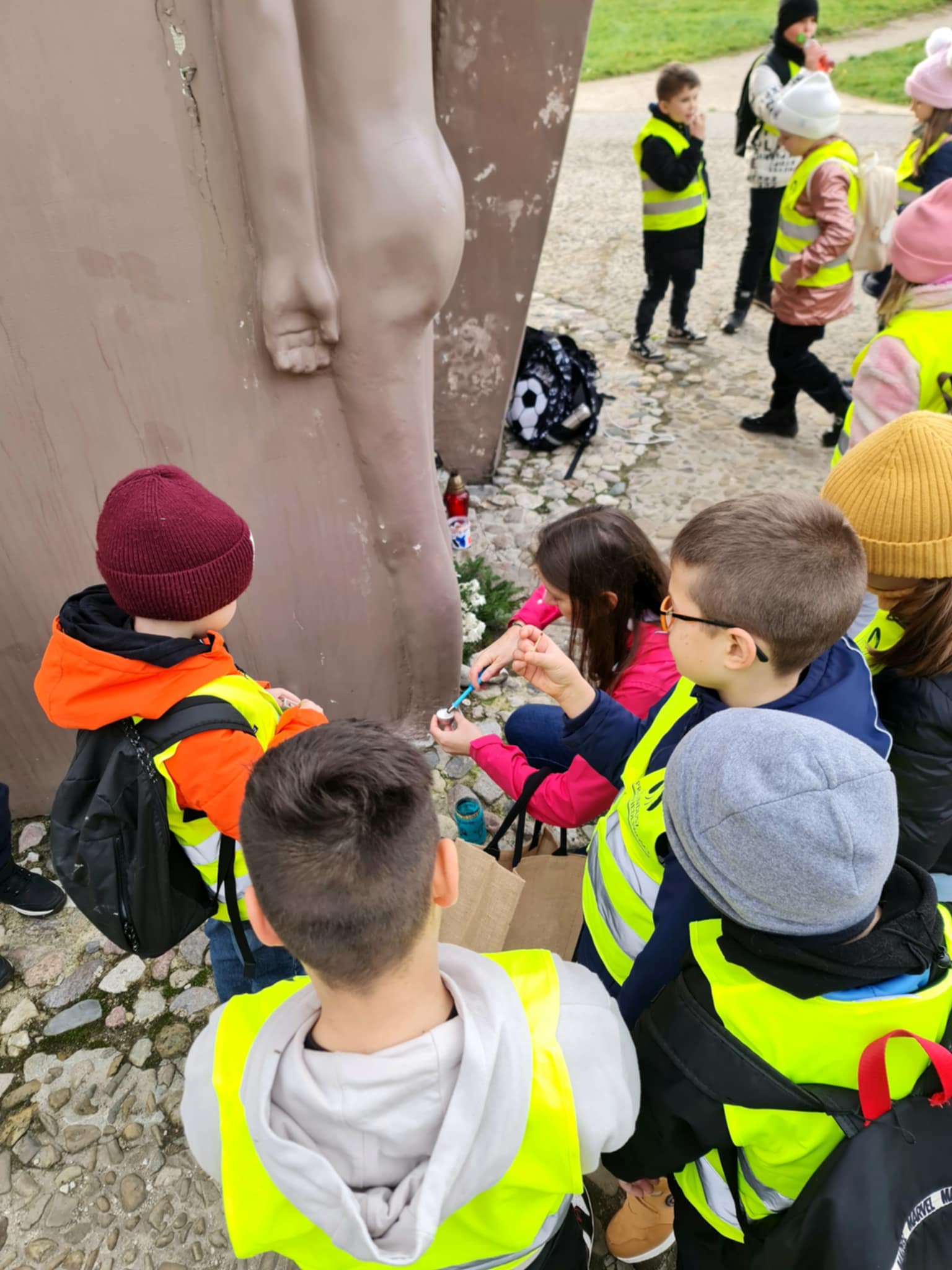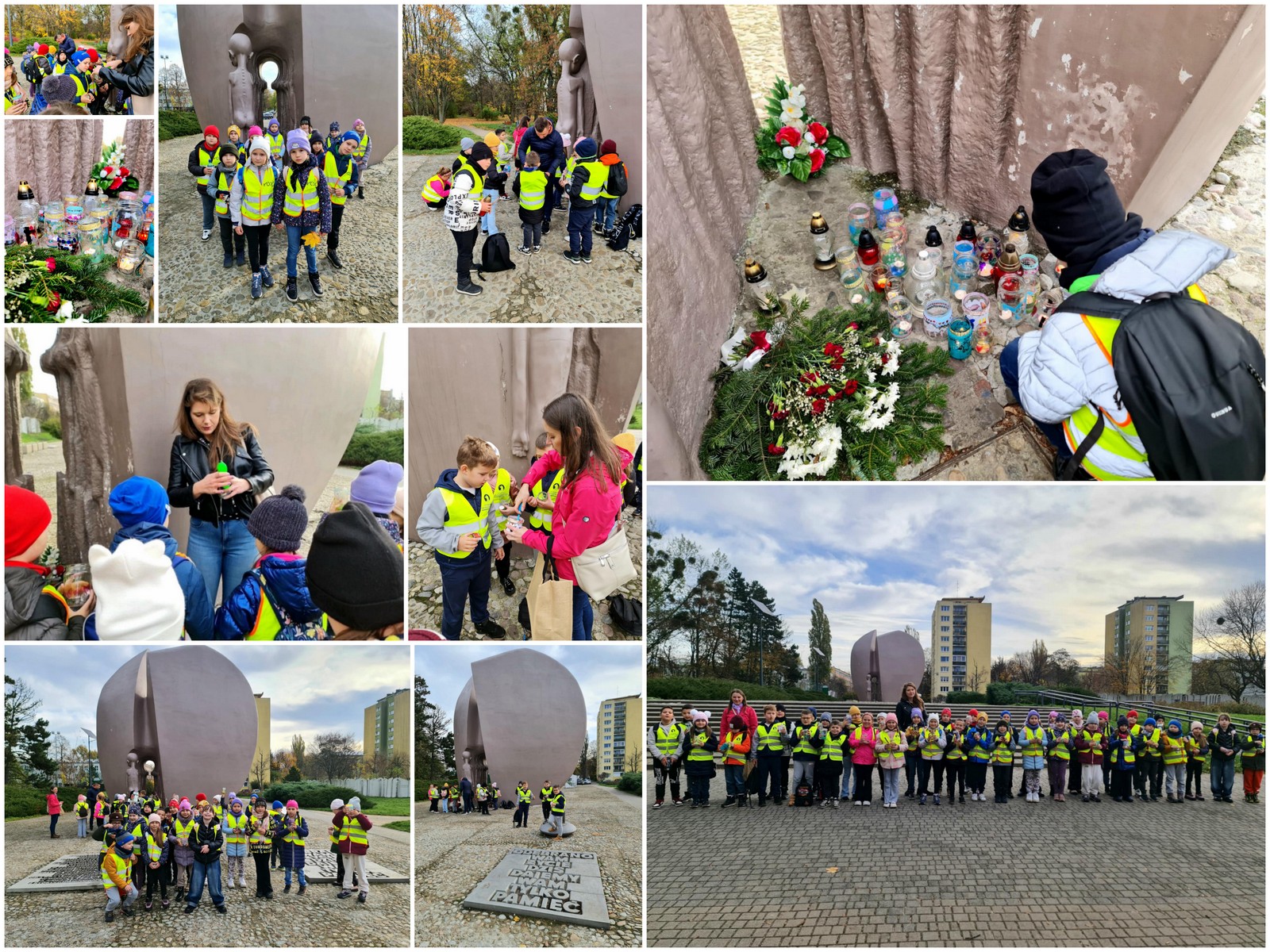 W dniu 30 października, tuż przed Dniem Wszystkich Świętych, uczniowie klas 2b i 2c (wraz z wychowawczyniami p. Małgorzatą Lipińską, p. Pauliną Wardęcką oraz p. Konradem Żaczkiem) wybrali się na spacer do Parku Szarych Szeregów. Pod Pomnikiem Pękniętego Serca (upamiętniającym tragiczne losy dzieci, które podczas II wojny światowej zostały pozbawione dzieciństwa i wolności) uczniowie złożyli własnoręcznie wykonane, autorskie znicze.