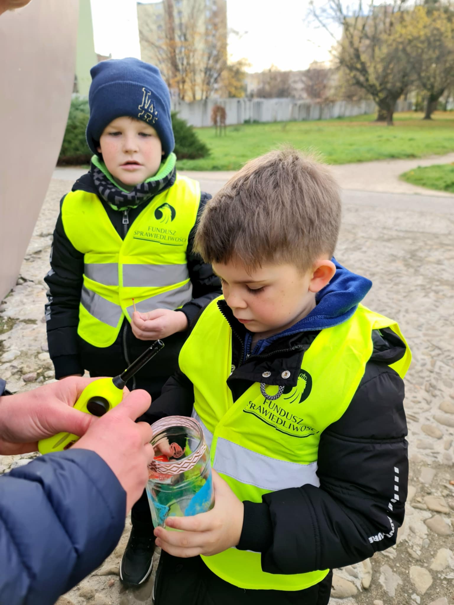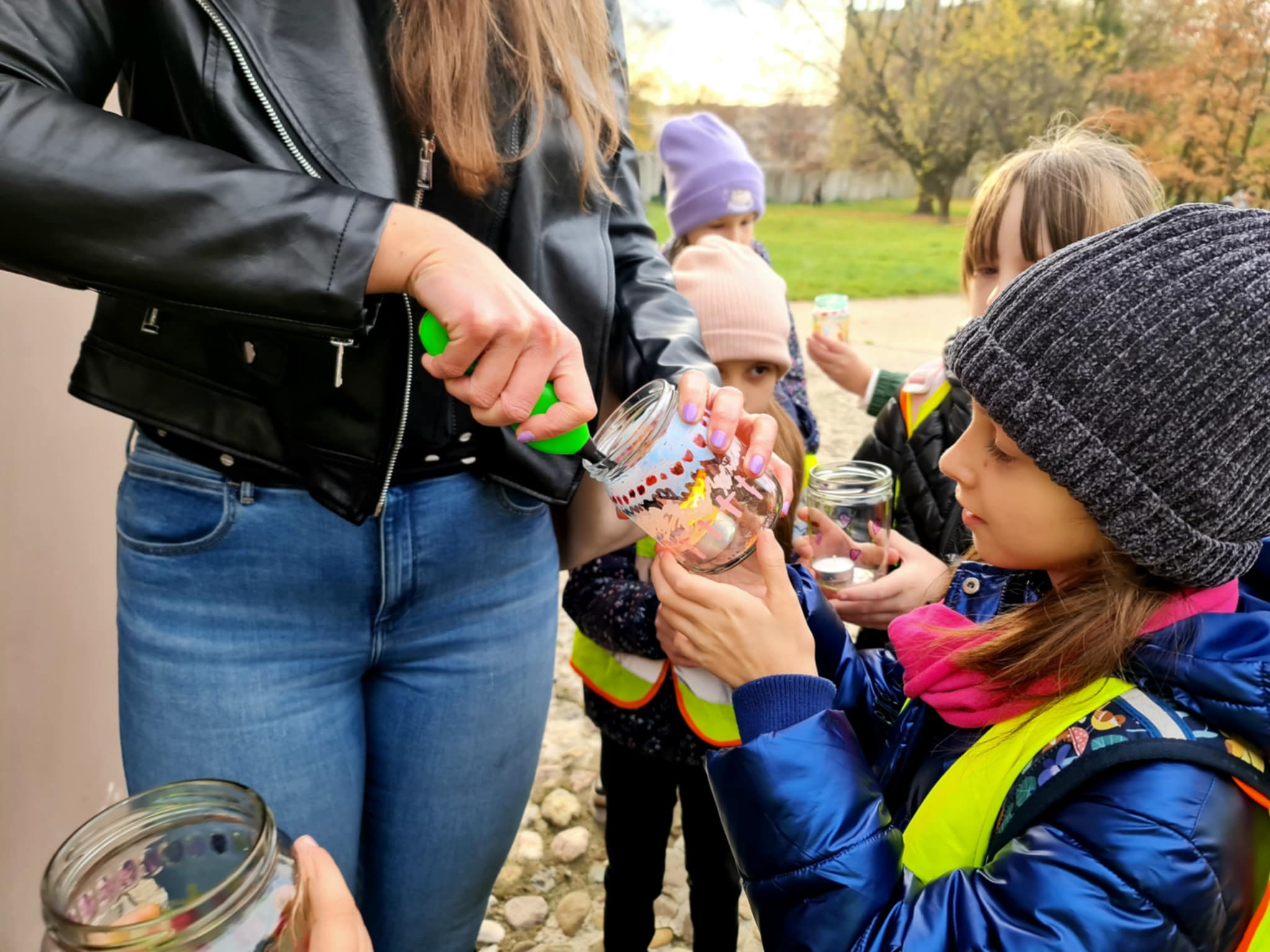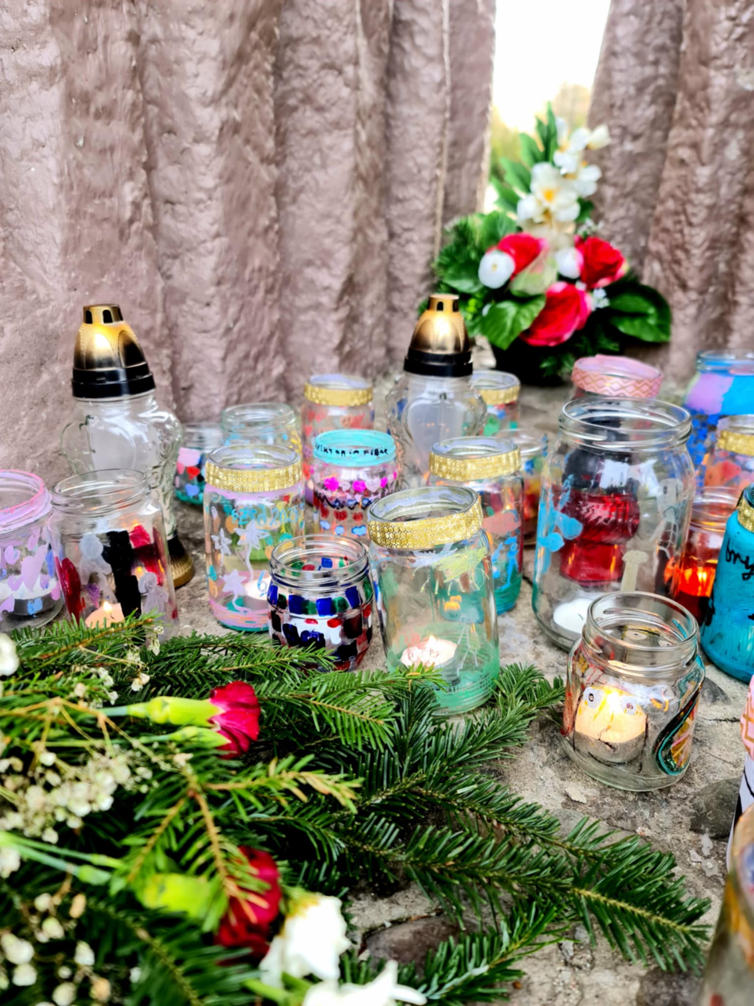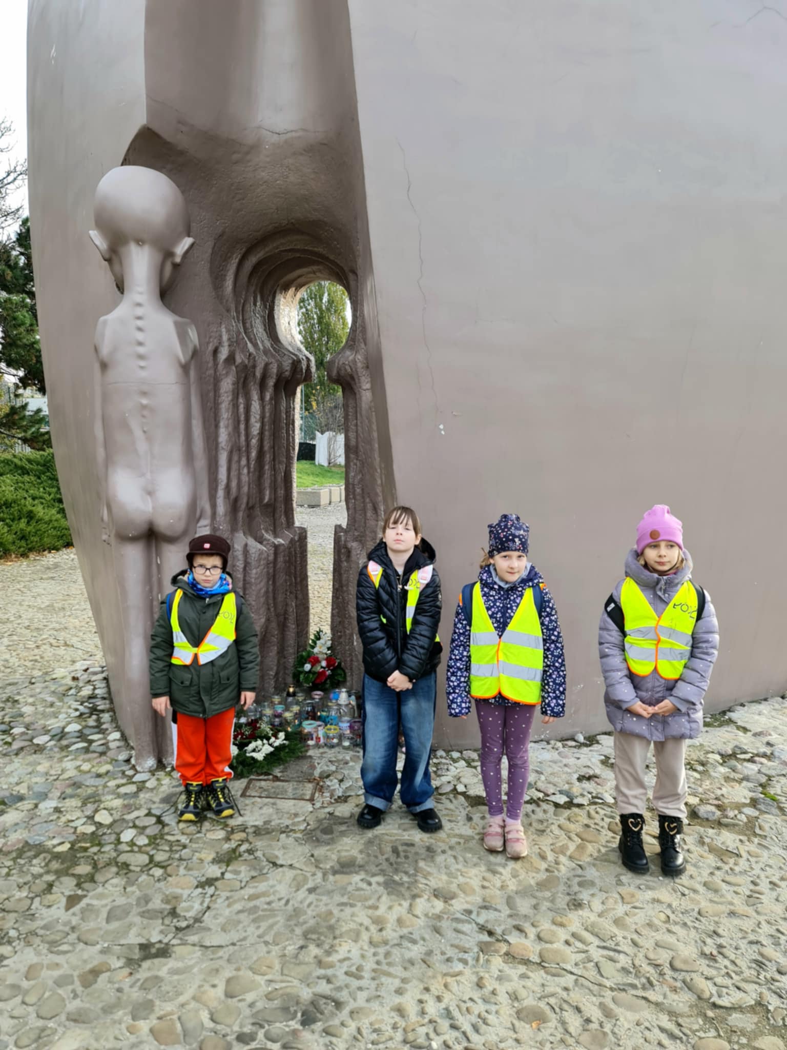 W dniu 30 października, tuż przed Dniem Wszystkich Świętych, uczniowie klas 2b i 2c (wraz z wychowawczyniami p. Małgorzatą Lipińską, p. Pauliną Wardęcką oraz p. Konradem Żaczkiem) wybrali się na spacer do Parku Szarych Szeregów. Pod Pomnikiem Pękniętego Serca (upamiętniającym tragiczne losy dzieci, które podczas II wojny światowej zostały pozbawione dzieciństwa i wolności) uczniowie złożyli własnoręcznie wykonane, autorskie znicze.
