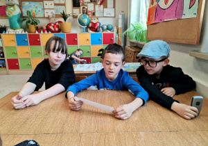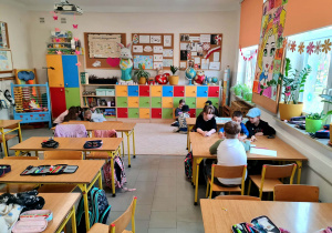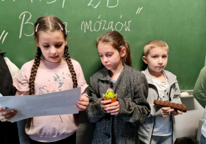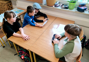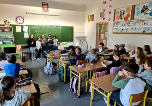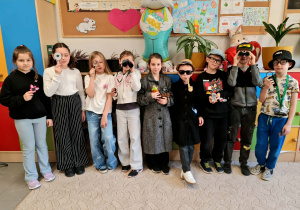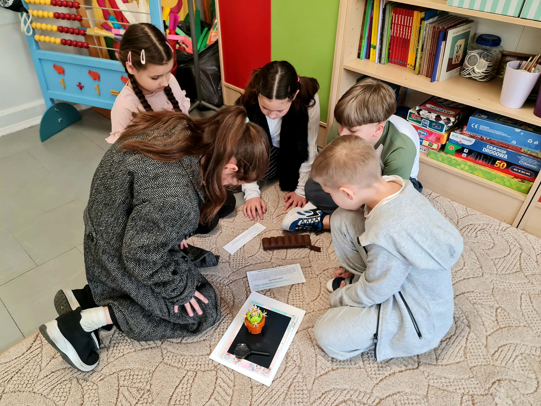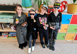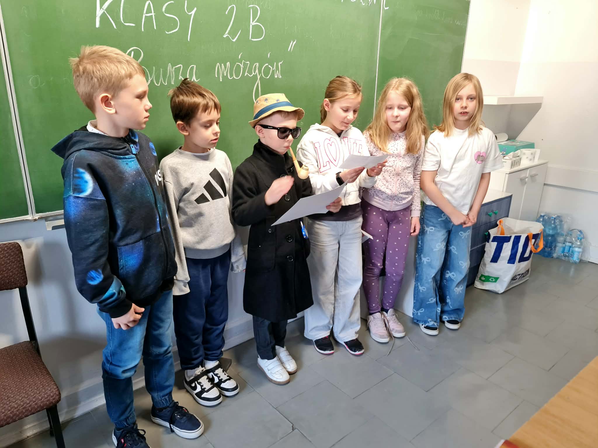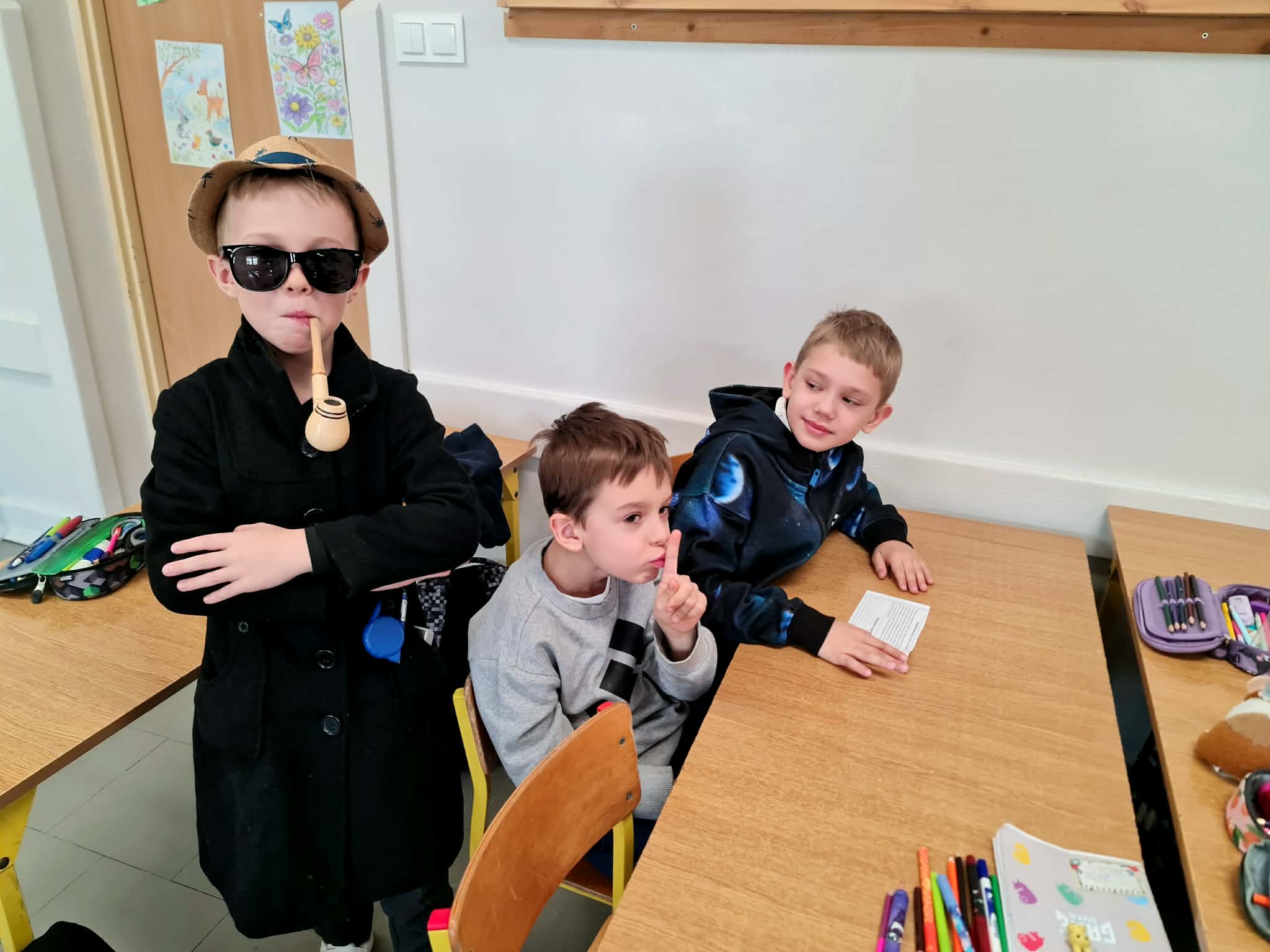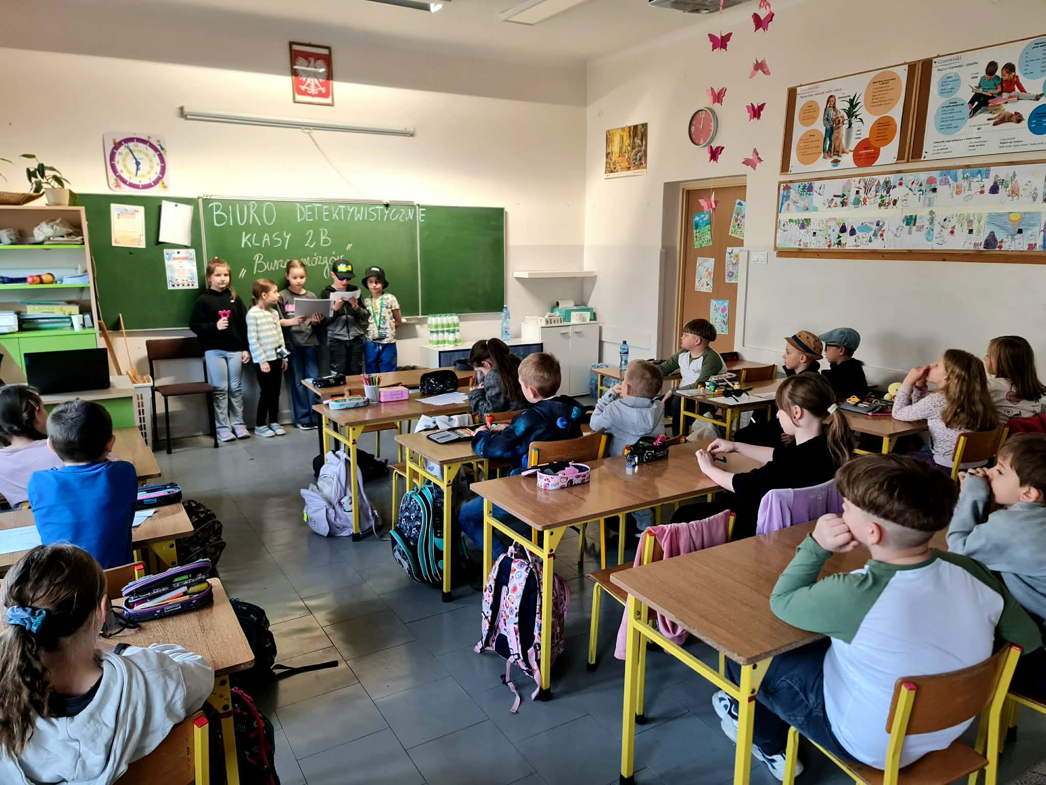 Pod koniec marca, w nawiązaniu do omawianej lektury pt.: „Detektyw Pozytywka”, uczniowie klasy 2b wzięli udział w nietypowych zajęciach. Na początku cała klasa założyła swoją agencję detektywistyczną i wymyśliła dla niej nazwę. Niektórzy chętni uczniowie tak bardzo wczuli się w rolę detektywów, że z okazji tych planowanych tematycznych zajęć przyszli do szkoły w specjalnych przebraniach i przynieśli ze sobą różne detektywistyczne akcesoria. Następnie uczniowie zostali podzieleni na cztery zespoły, których zadaniem było rozwikłanie zagadkowych historii otrzymanych od tajemniczych klientów. Każda grupa z dużym zaangażowaniem analizowała wskazówki i szukała właściwych rozwiązań. Na zakończenie zespoły zaprezentowały swoje pomysły na rozwiązanie powierzonych im spraw. Dzieci świetnie poradziły sobie z zadaniami, wykazując się spostrzegawczością, logicznym myśleniem, kreatywnością oraz umiejętnością współpracy.