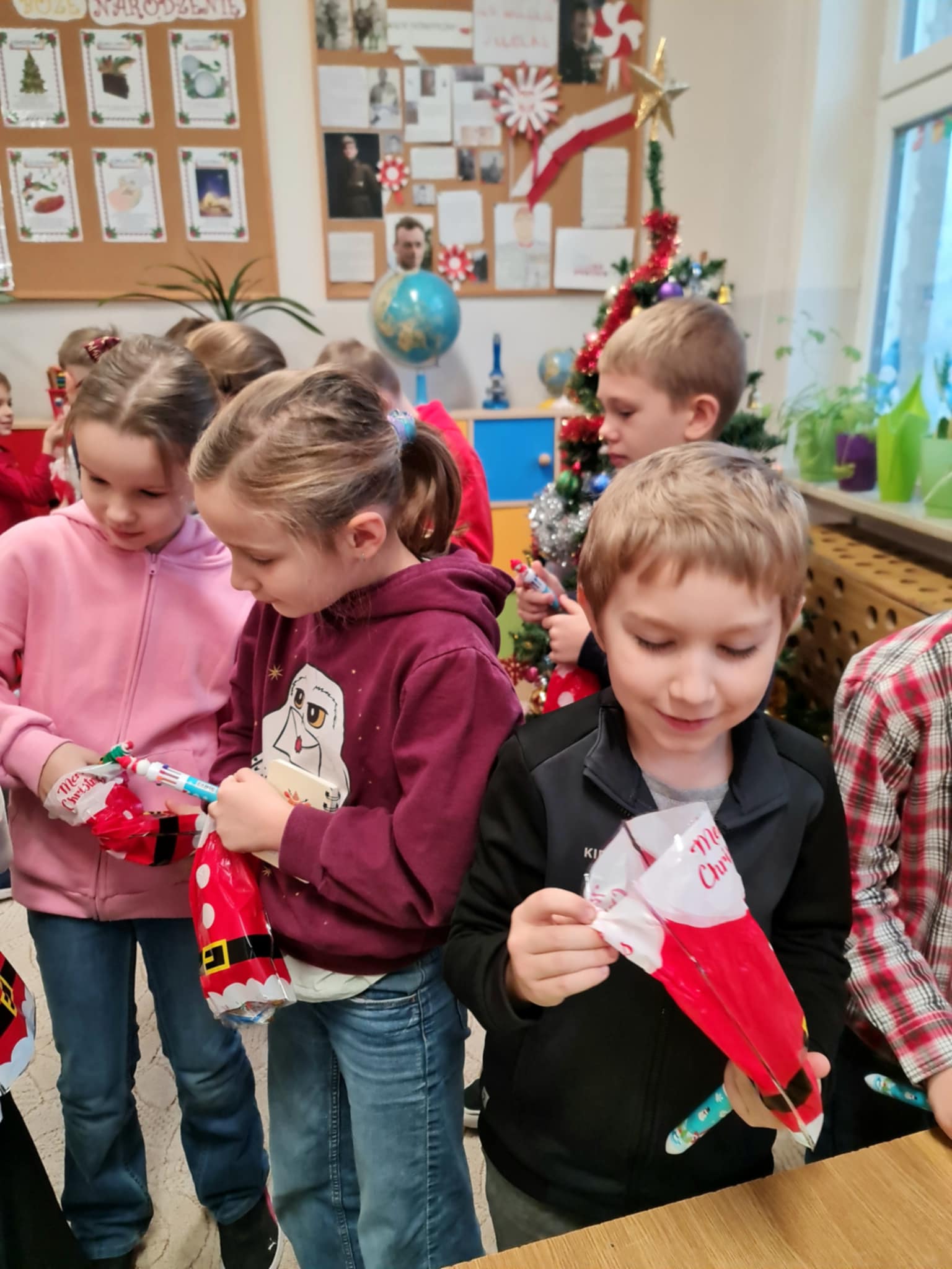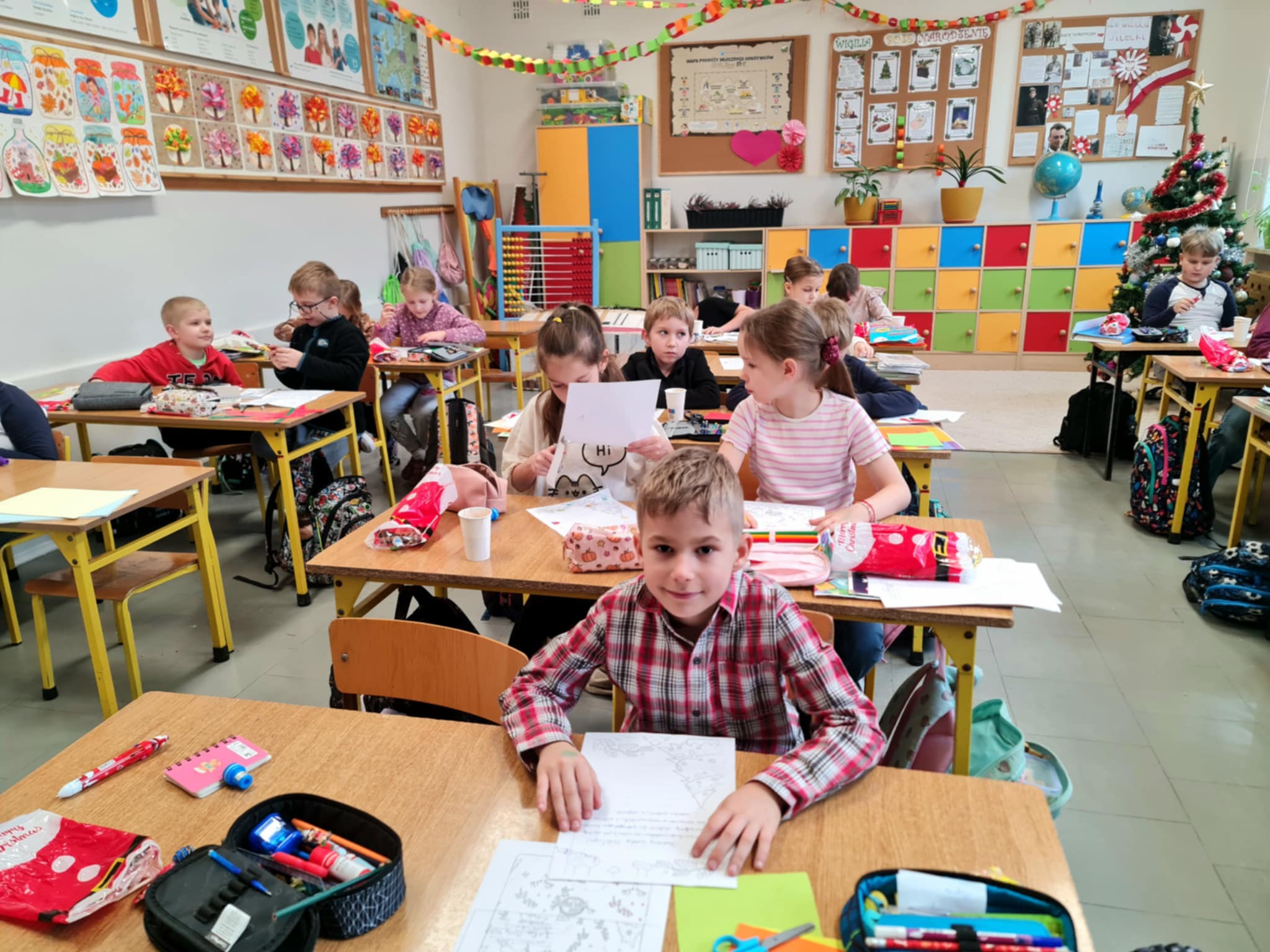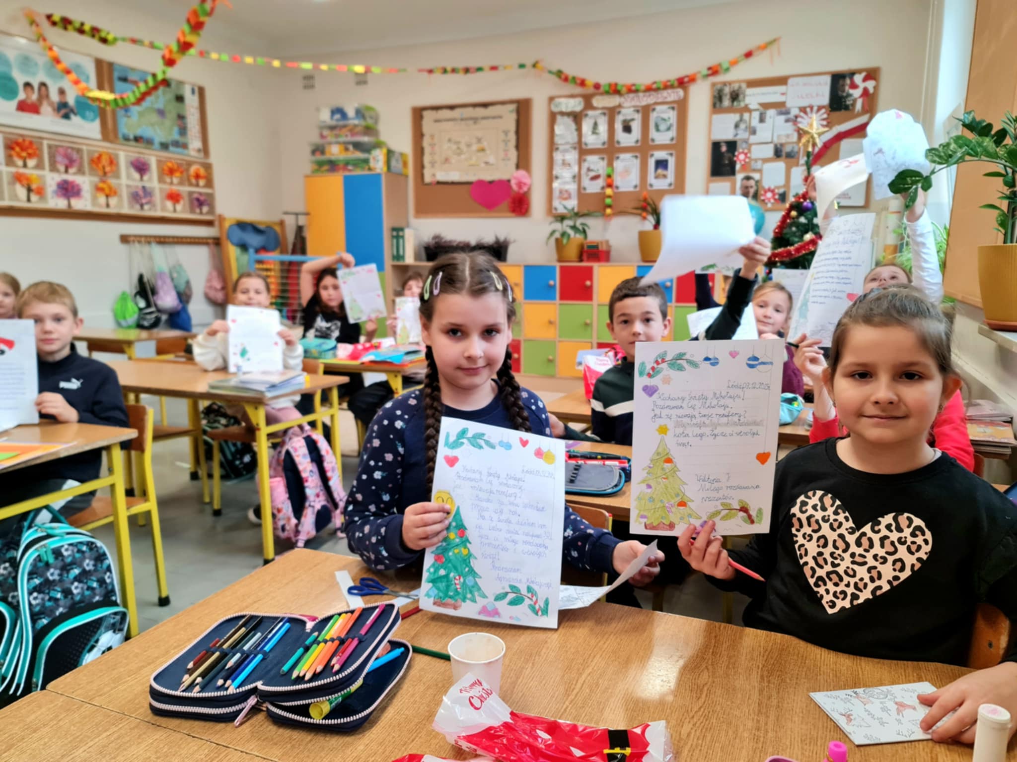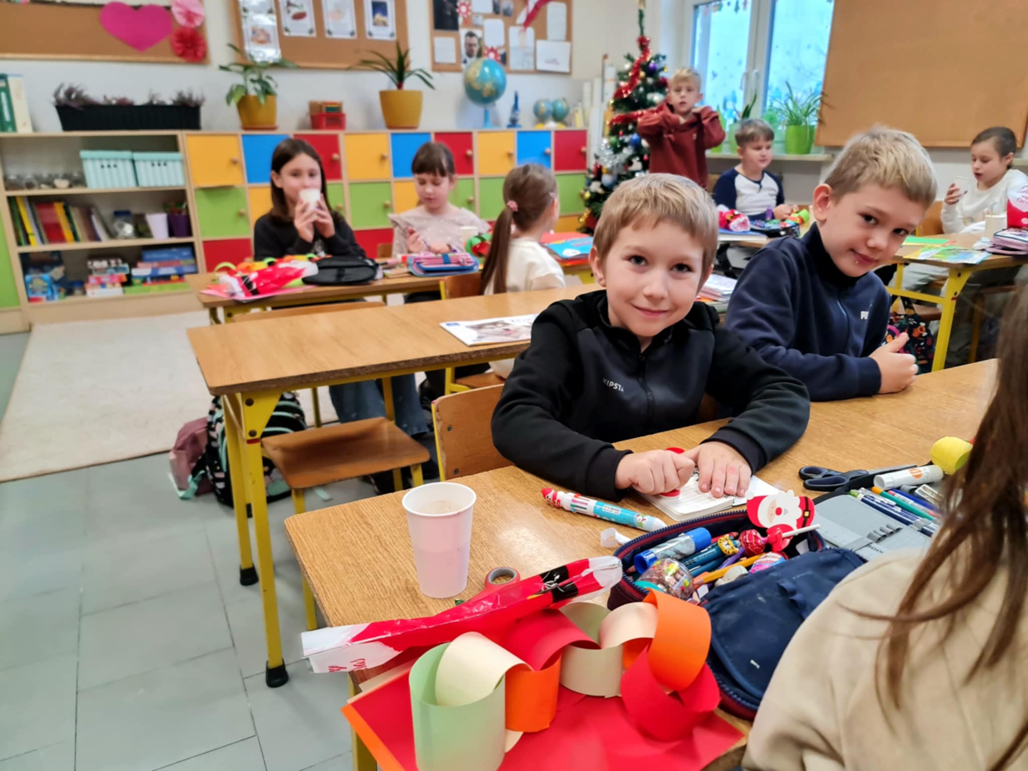 Po odpakowaniu podarunków, dzieci zabrały się za pisanie listów do Świętego Mikołaja. Włożyły w to wiele serca. Następnie samodzielnie adresowały koperty, dzięki czemu mogły zyskać pewność, że trafią one w ręce adresata. Tego dnia, w klasie powstawały również kolorowe, papierowe łańcuchy, które wprowadziły jeszcze więcej świątecznych barw i radości.