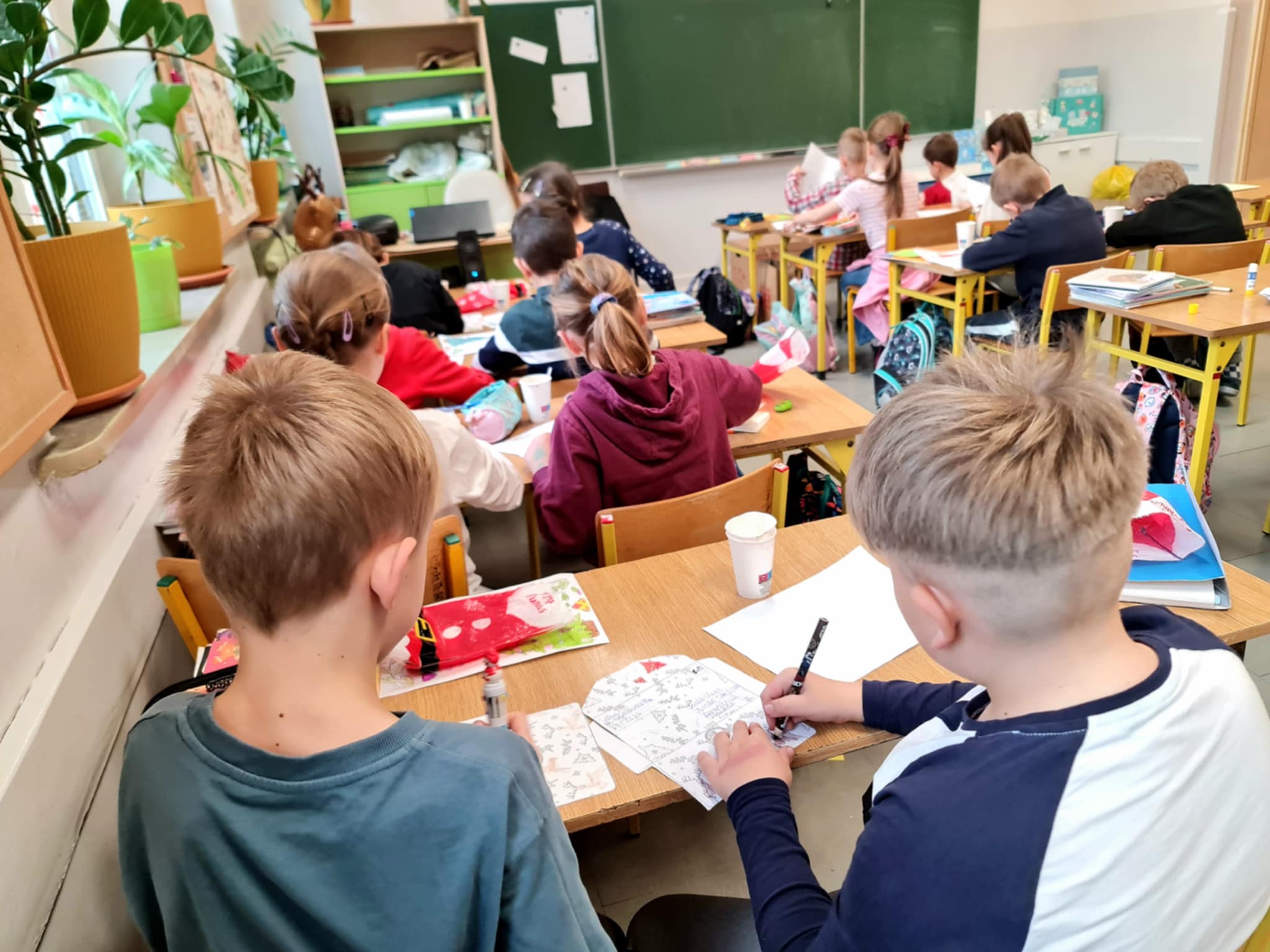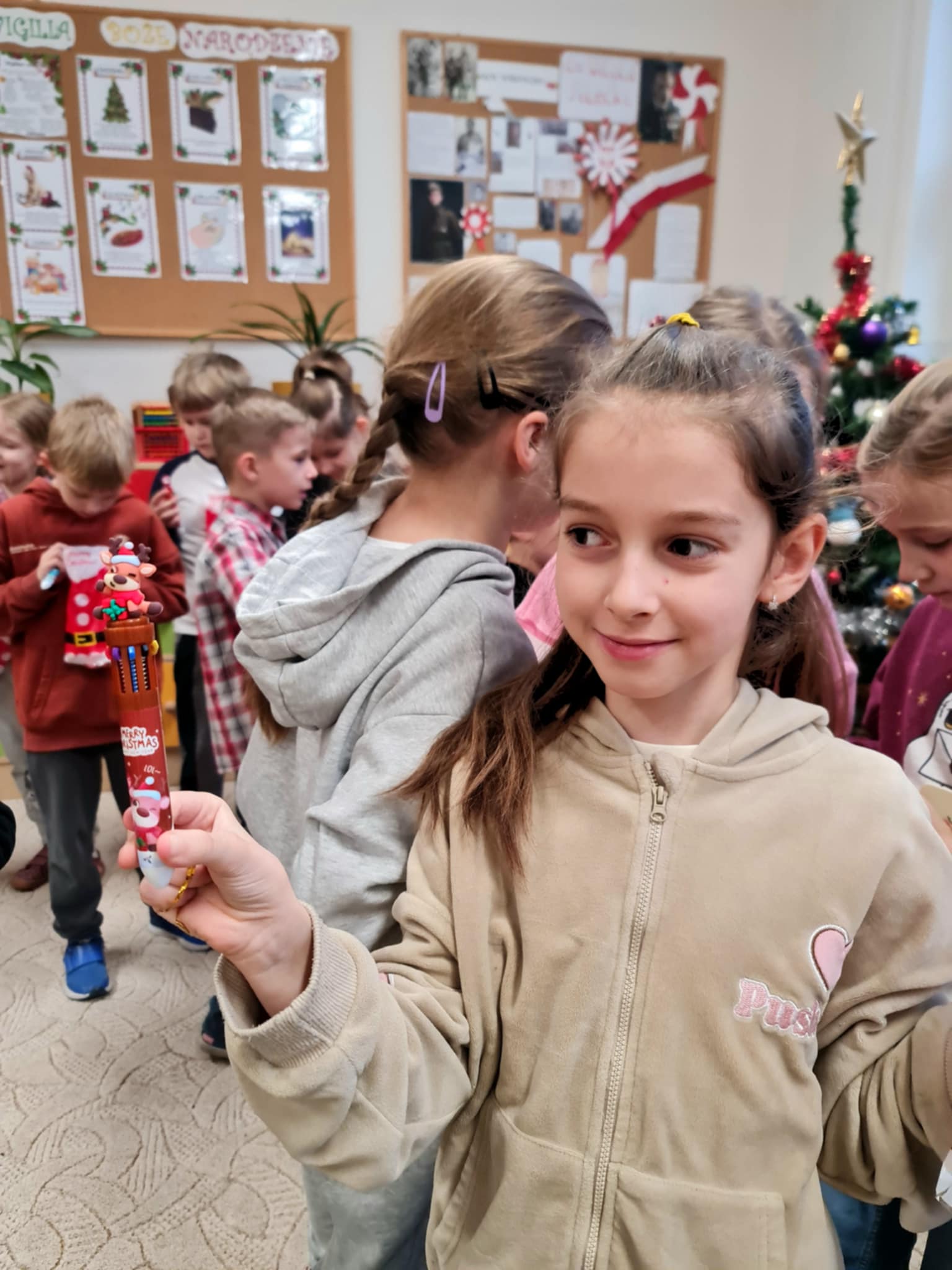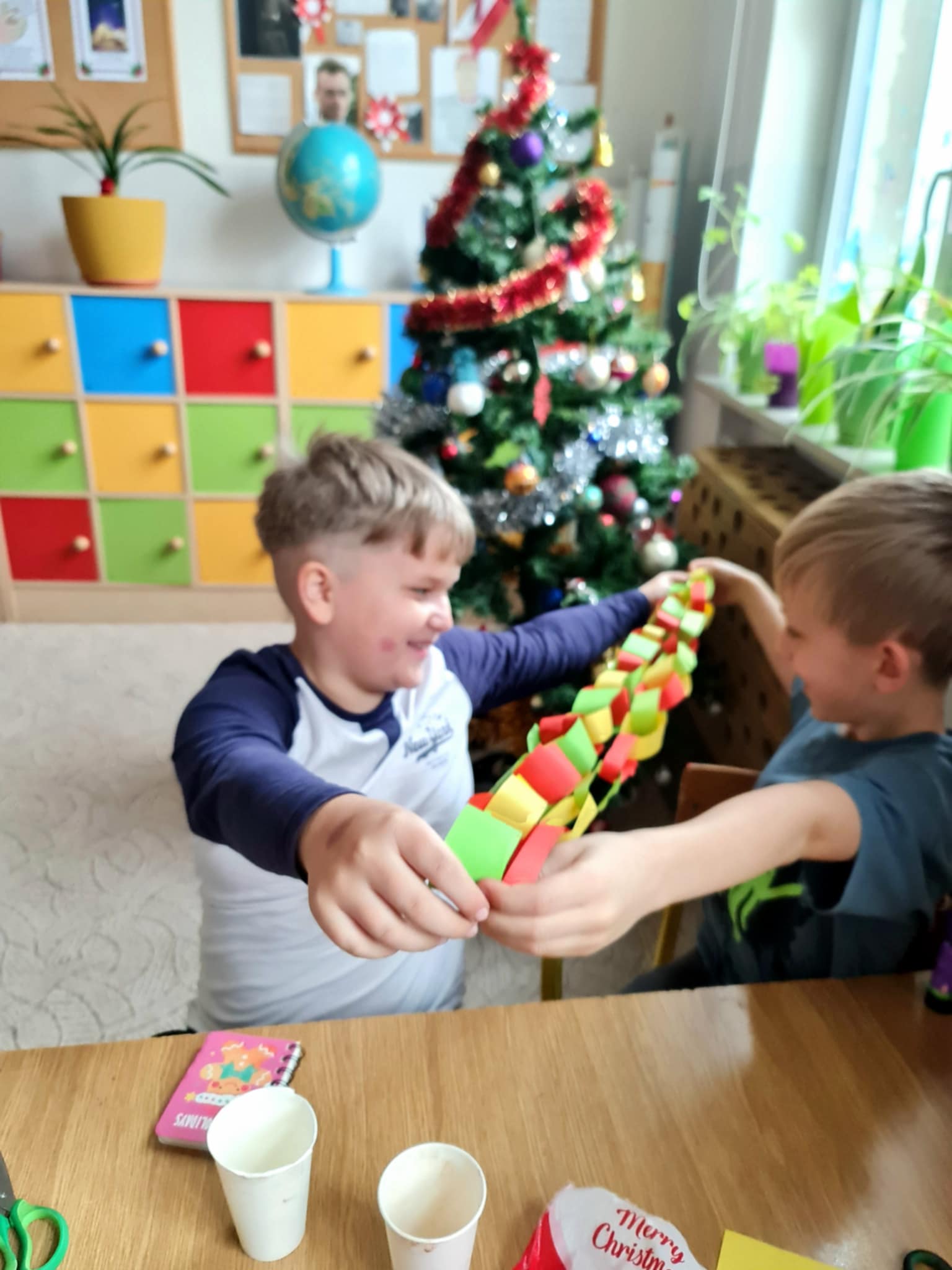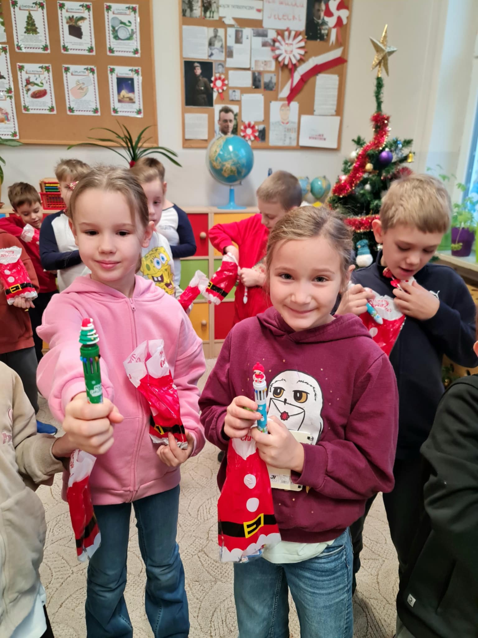 Po odpakowaniu podarunków, dzieci zabrały się za pisanie listów do Świętego Mikołaja. Włożyły w to wiele serca. Następnie samodzielnie adresowały koperty, dzięki czemu mogły zyskać pewność, że trafią one w ręce adresata. Tego dnia, w klasie powstawały również kolorowe, papierowe łańcuchy, które wprowadziły jeszcze więcej świątecznych barw i radości.