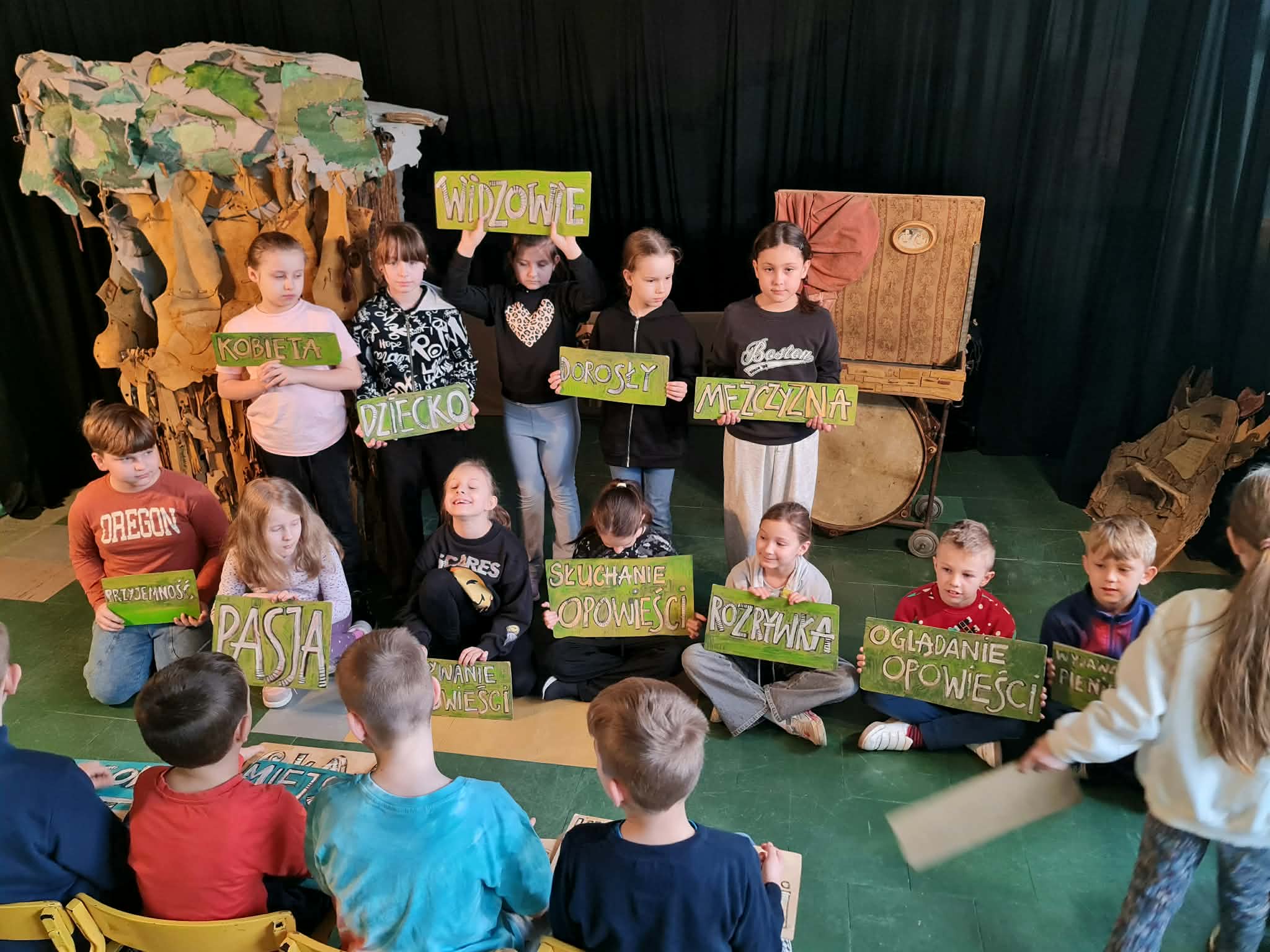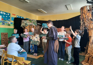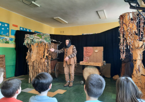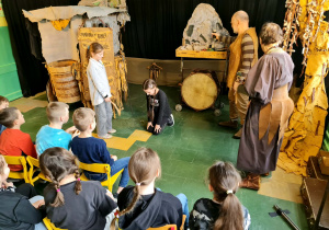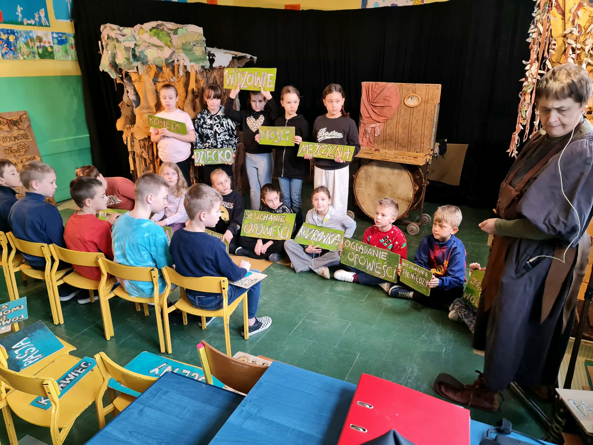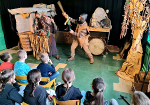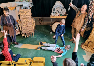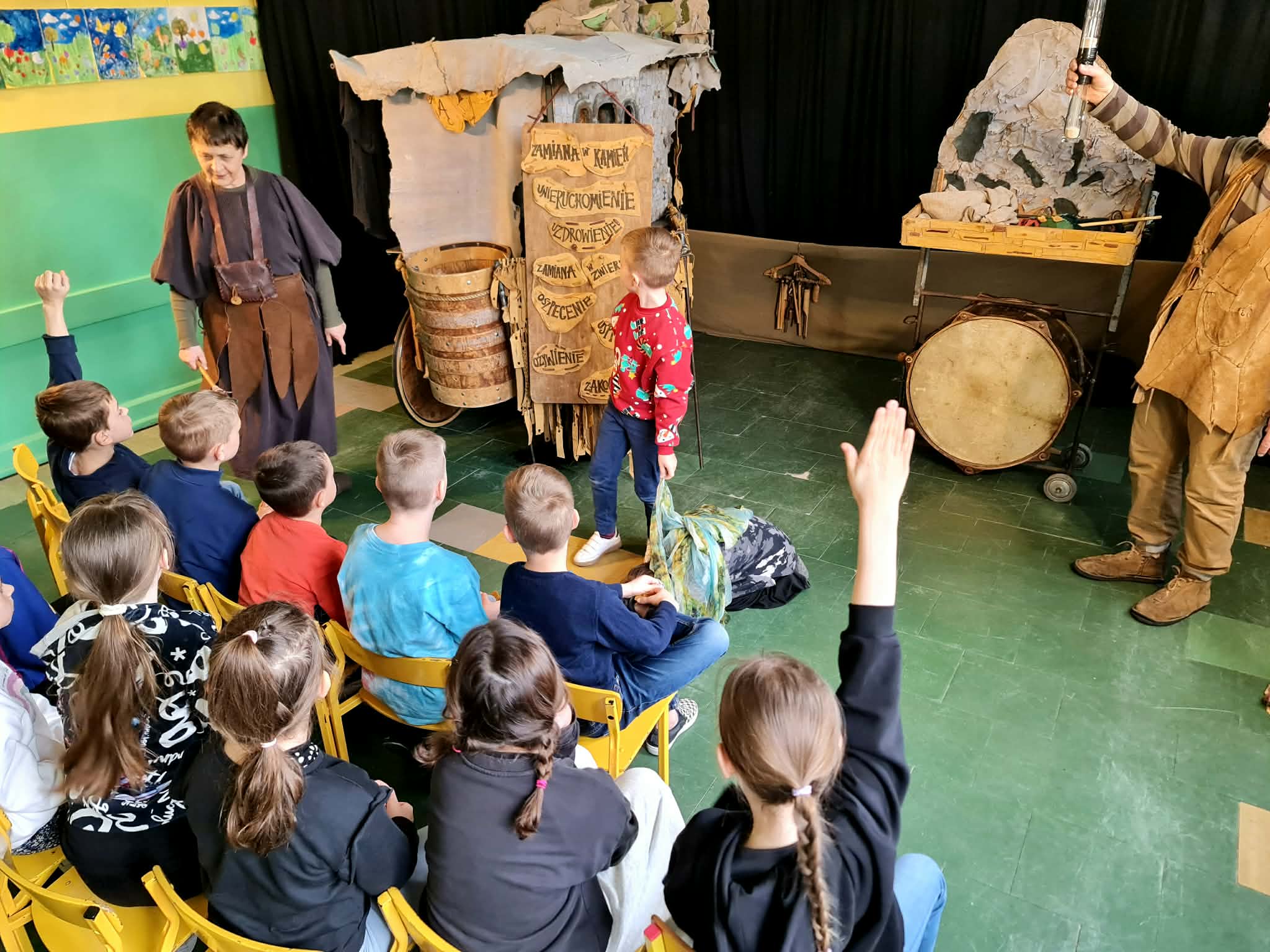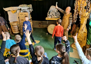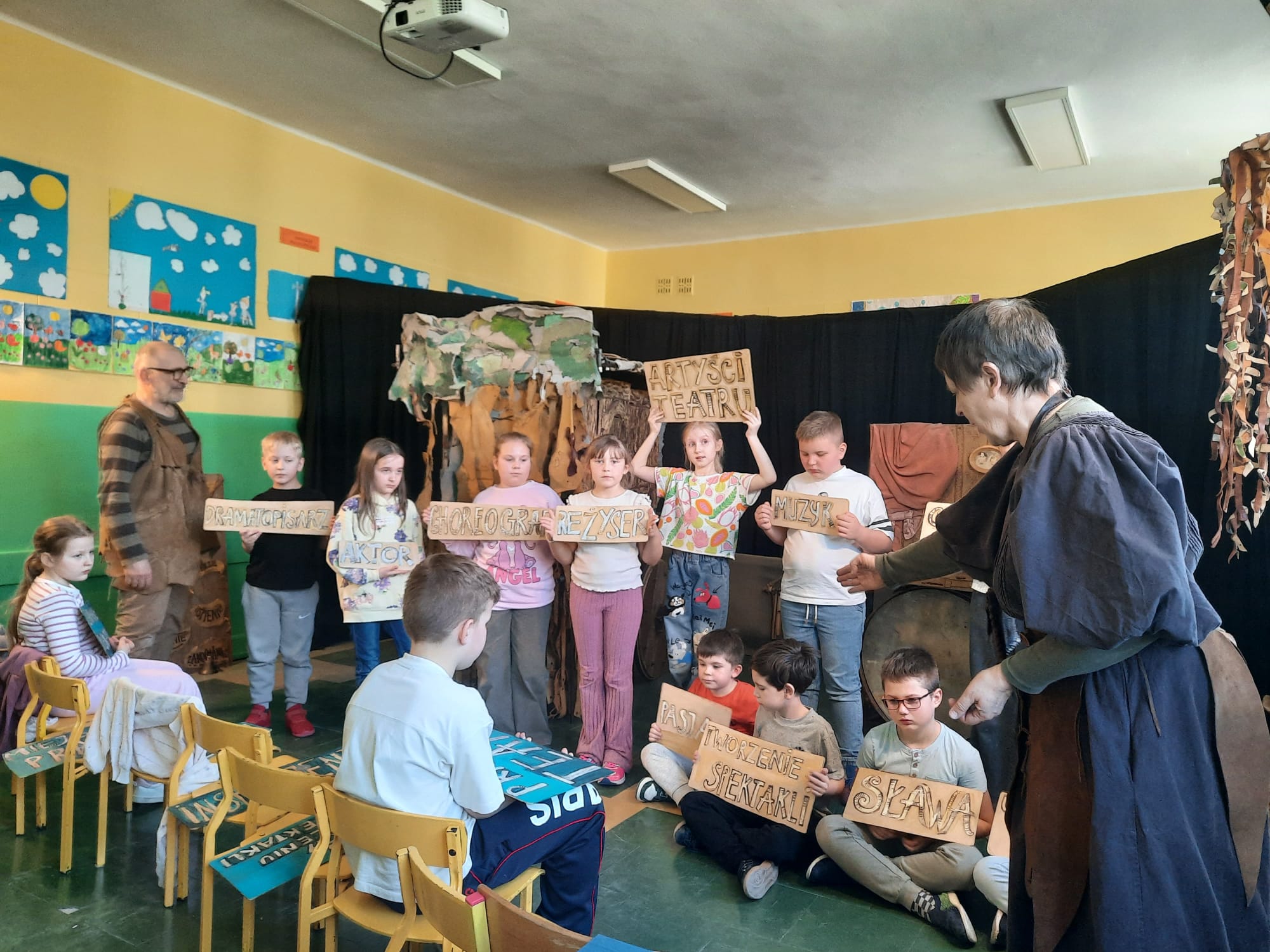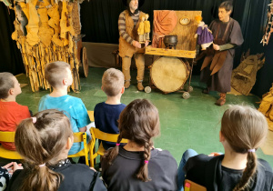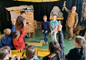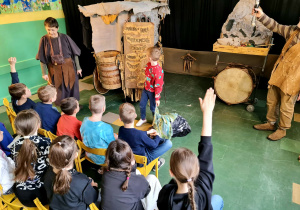 Uczniowie klas 2a, 2b i 2c wzięli udział w ciekawych warsztatach teatralnych pt.: Po co teatr?", które odbyły się na terenie naszej szkoły. Na początku zajęć dzieci dowiedziały się, jak wyglądał handel w dawnych czasach – poznały dawne środki płatnicze oraz dowiedziały się, na czym polegała wymiana towarów, zanim zaczęto powszechnie używać pieniędzy. Podczas warsztatów uczniowie poznali również, jak ważną rolę od wieków odgrywa teatr w życiu ludzi – zarówno widzów, jak i osób pracujących przy tworzeniu spektakli. Dzieci miały okazję dowiedzieć się, czym jest baśń jako gatunek literacki, jakie elementy powinna zawierać oraz dlaczego opowieści i narracja są tak ważne w kulturze. Chętni uczniowie mogli spróbować nie tylko swoich sił w działaniach aktorskich, ale i uczyć się rzucać tajemnicze zaklęcia. W trakcie zajęć dzieci aktywnie uczestniczyły w różnych zadaniach i zabawach teatralnych, wykorzystując liczne rekwizyty. Ich zaangażowanie i zdobywane umiejętności były nagradzane specjalnymi talarami, które dodatkowo motywowały do działania i współpracy.