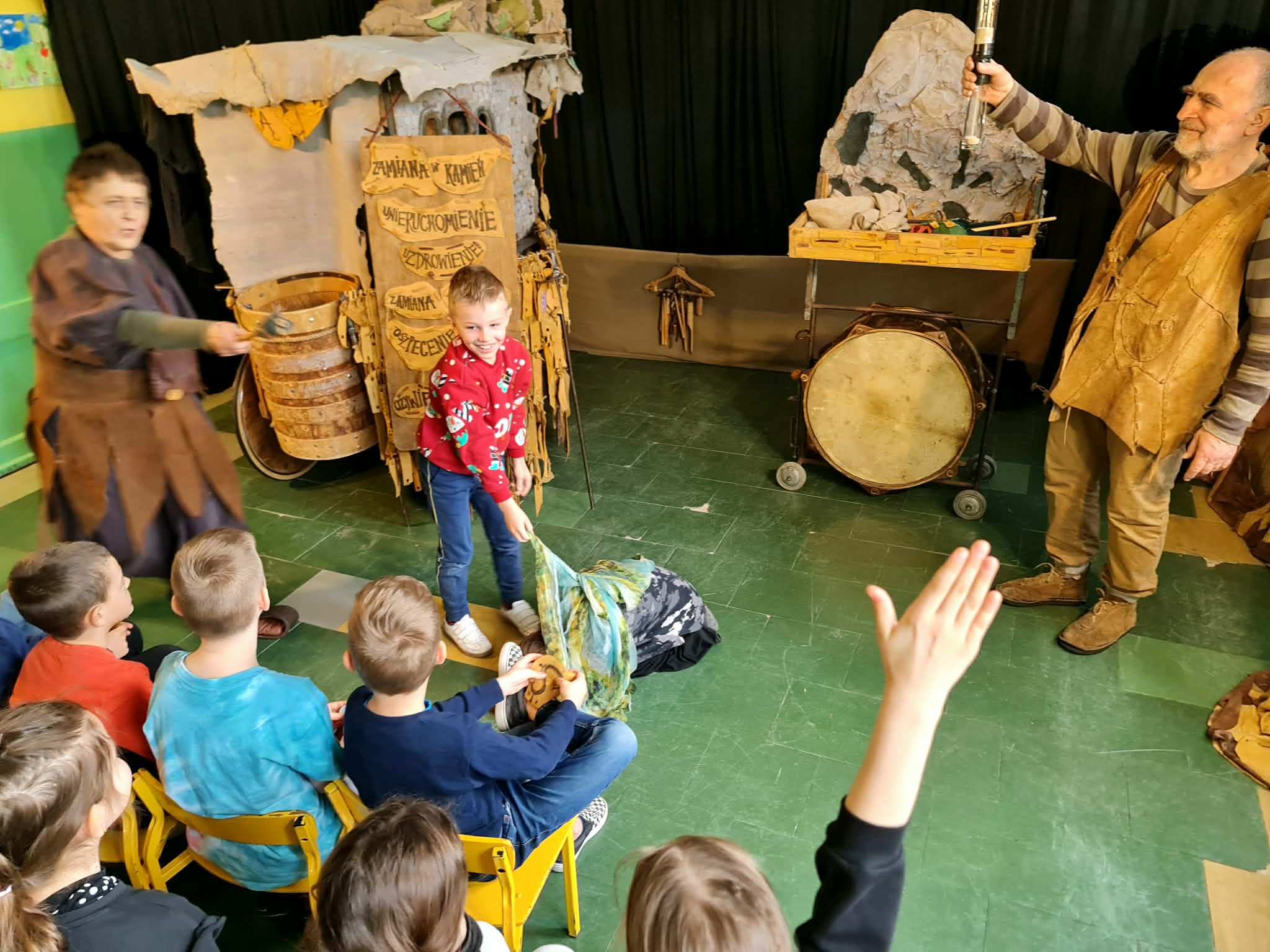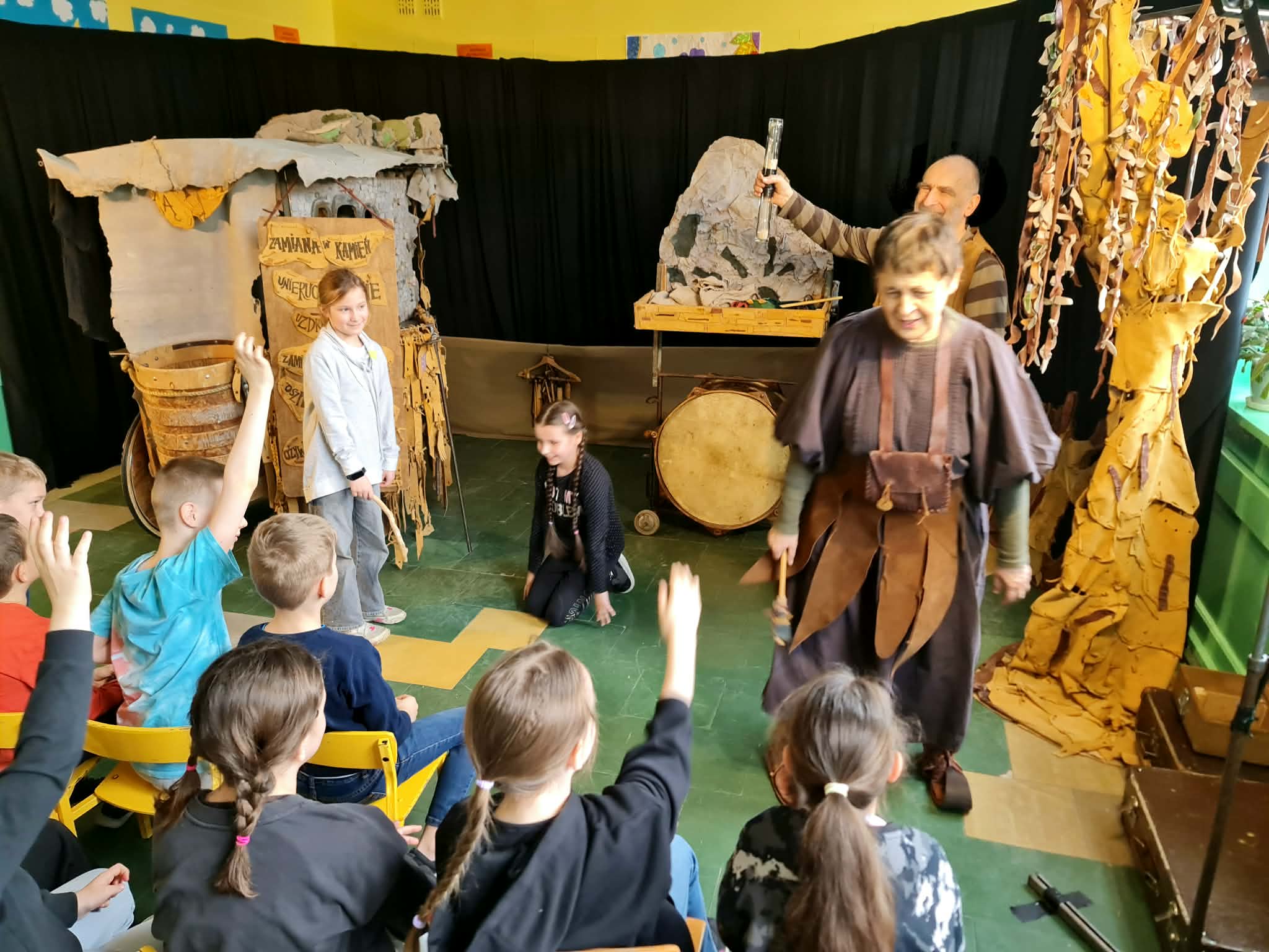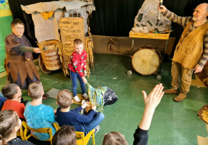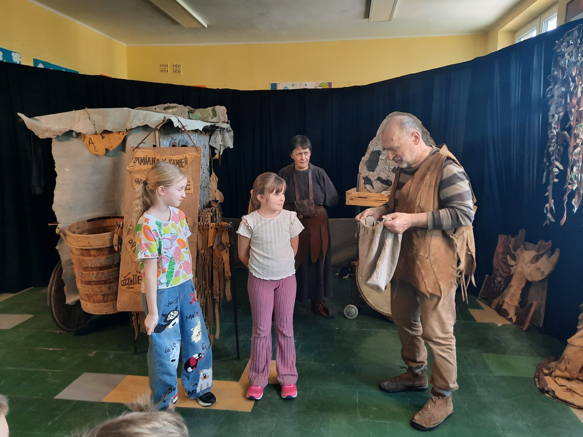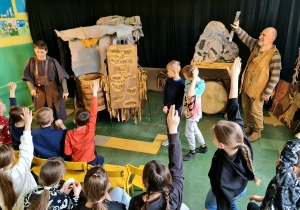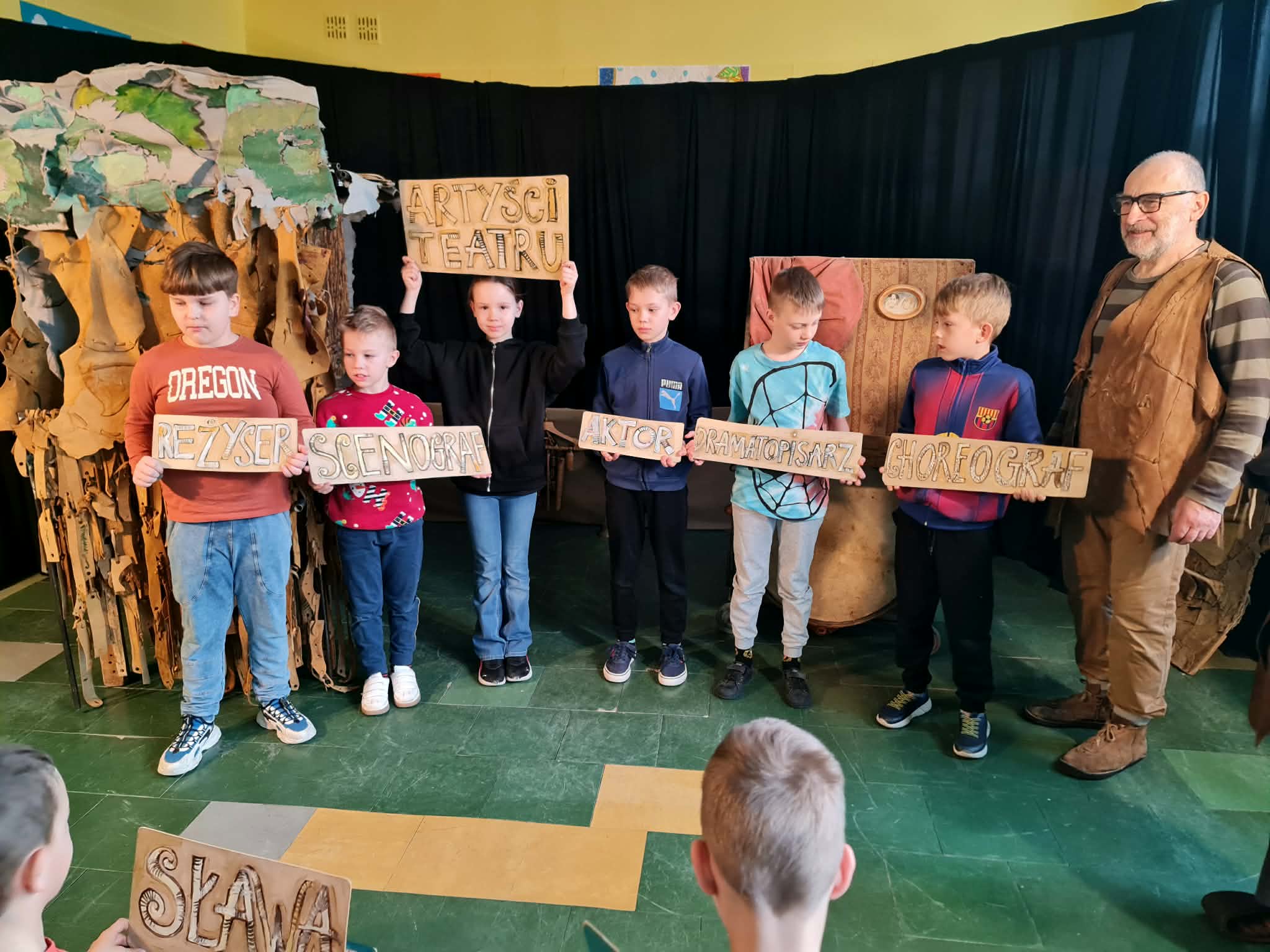 Uczniowie klas 2a, 2b i 2c wzięli udział w ciekawych warsztatach teatralnych pt.: Po co teatr?", które odbyły się na terenie naszej szkoły. Na początku zajęć dzieci dowiedziały się, jak wyglądał handel w dawnych czasach – poznały dawne środki płatnicze oraz dowiedziały się, na czym polegała wymiana towarów, zanim zaczęto powszechnie używać pieniędzy. Podczas warsztatów uczniowie poznali również, jak ważną rolę od wieków odgrywa teatr w życiu ludzi – zarówno widzów, jak i osób pracujących przy tworzeniu spektakli. Dzieci miały okazję dowiedzieć się, czym jest baśń jako gatunek literacki, jakie elementy powinna zawierać oraz dlaczego opowieści i narracja są tak ważne w kulturze. Chętni uczniowie mogli spróbować nie tylko swoich sił w działaniach aktorskich, ale i uczyć się rzucać tajemnicze zaklęcia. W trakcie zajęć dzieci aktywnie uczestniczyły w różnych zadaniach i zabawach teatralnych, wykorzystując liczne rekwizyty. Ich zaangażowanie i zdobywane umiejętności były nagradzane specjalnymi talarami, które dodatkowo motywowały do działania i współpracy.