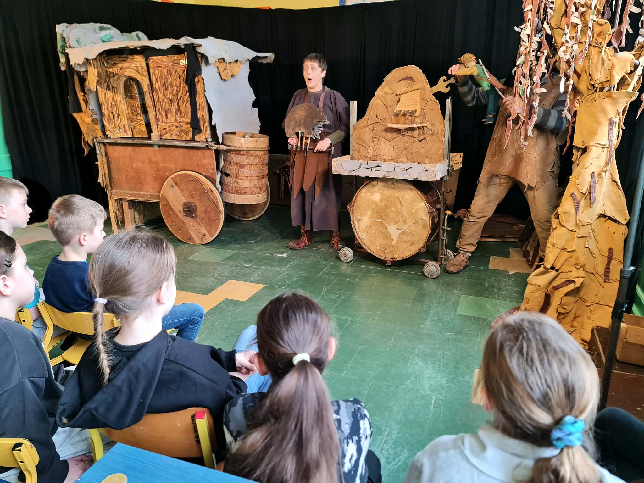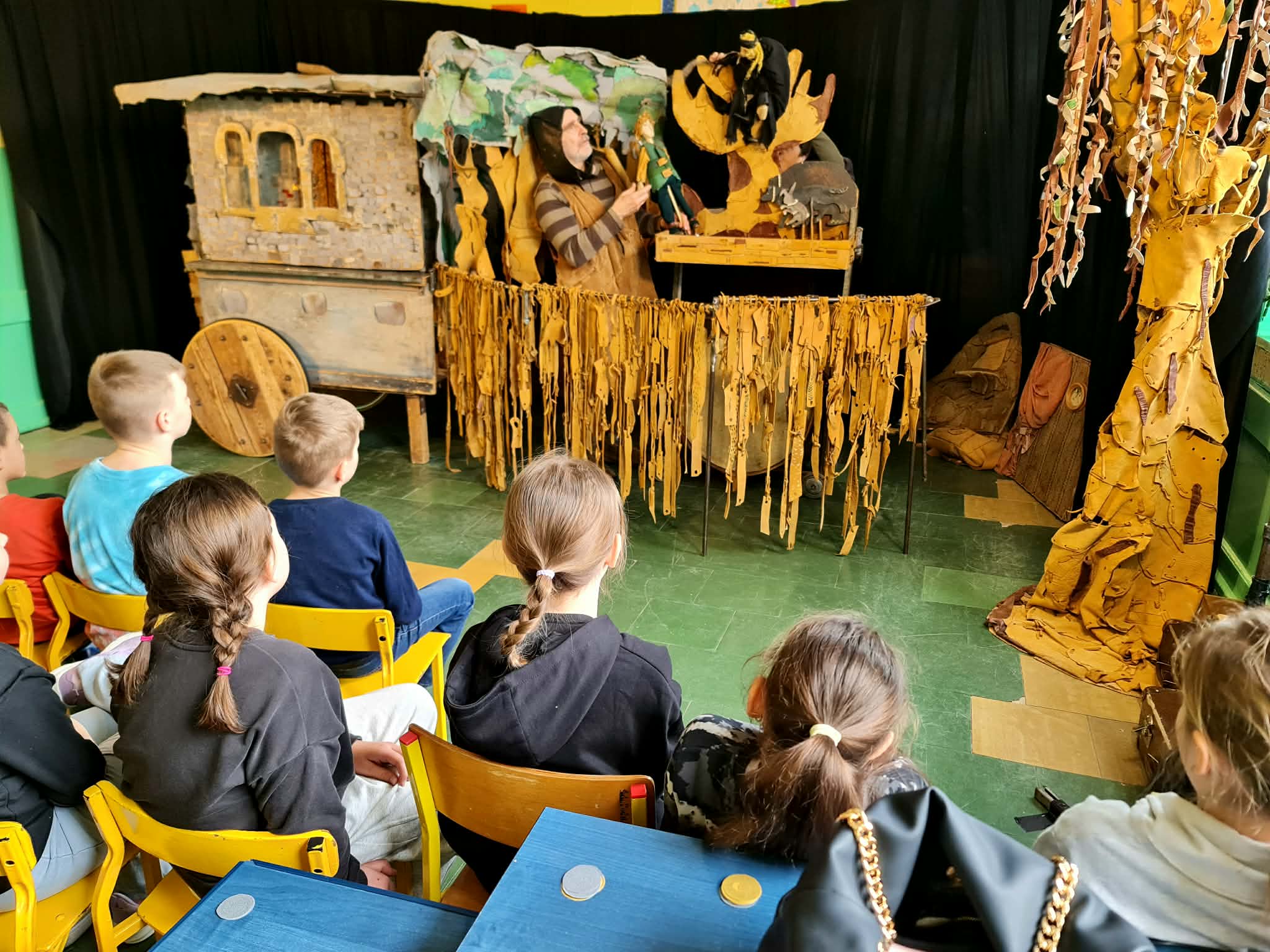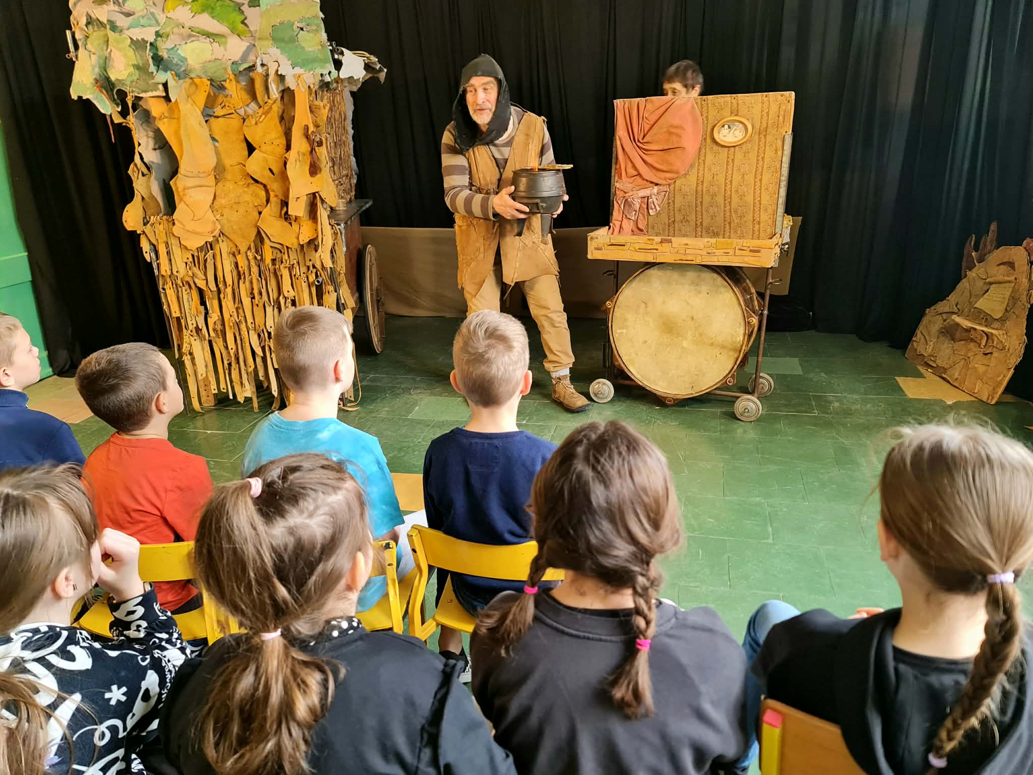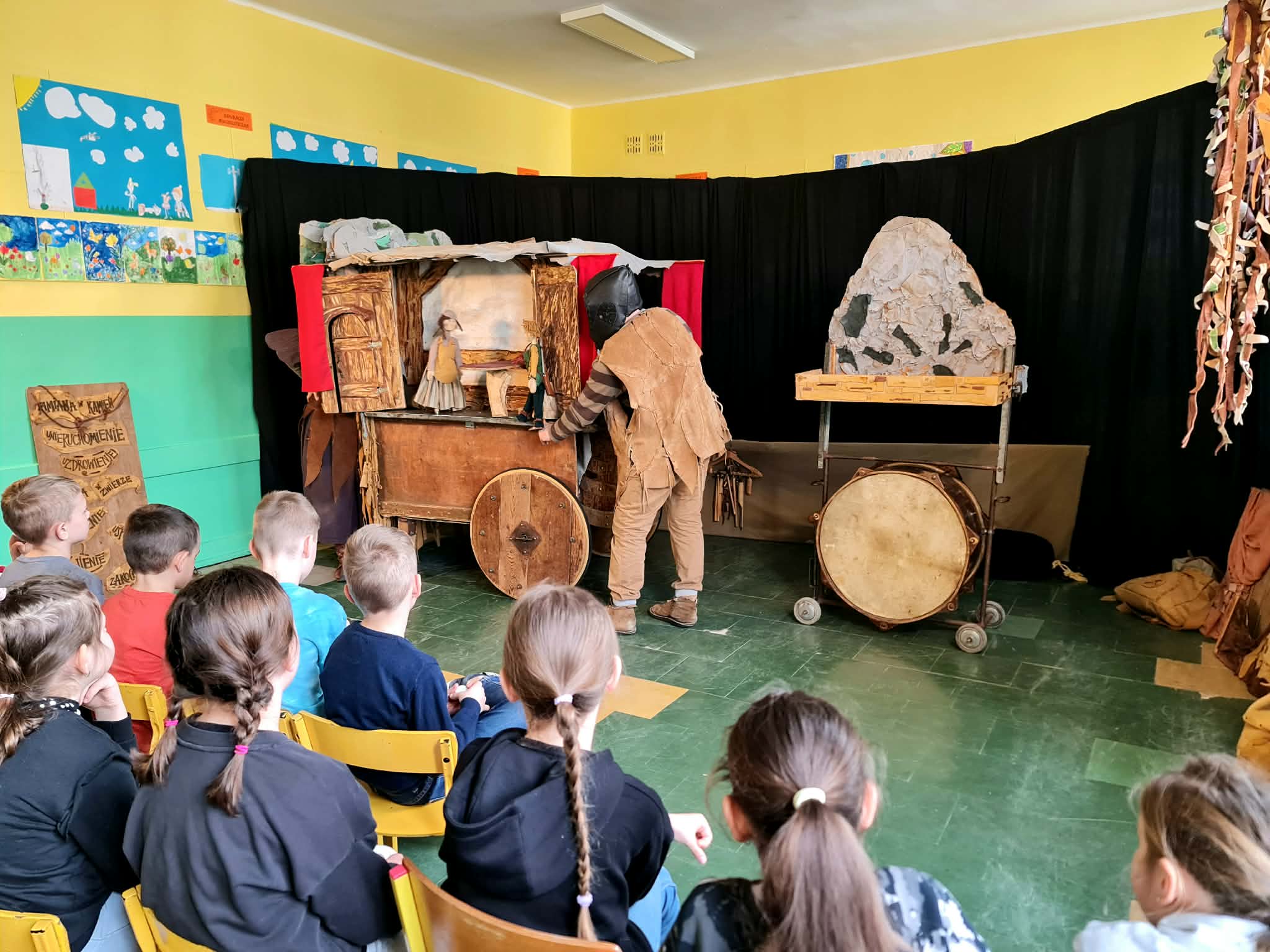 Uczniowie klas 2a, 2b i 2c wzięli udział w ciekawych warsztatach teatralnych pt.: Po co teatr?", które odbyły się na terenie naszej szkoły. Na początku zajęć dzieci dowiedziały się, jak wyglądał handel w dawnych czasach – poznały dawne środki płatnicze oraz dowiedziały się, na czym polegała wymiana towarów, zanim zaczęto powszechnie używać pieniędzy. Podczas warsztatów uczniowie poznali również, jak ważną rolę od wieków odgrywa teatr w życiu ludzi – zarówno widzów, jak i osób pracujących przy tworzeniu spektakli. Dzieci miały okazję dowiedzieć się, czym jest baśń jako gatunek literacki, jakie elementy powinna zawierać oraz dlaczego opowieści i narracja są tak ważne w kulturze. Chętni uczniowie mogli spróbować nie tylko swoich sił w działaniach aktorskich, ale i uczyć się rzucać tajemnicze zaklęcia. W trakcie zajęć dzieci aktywnie uczestniczyły w różnych zadaniach i zabawach teatralnych, wykorzystując liczne rekwizyty. Ich zaangażowanie i zdobywane umiejętności były nagradzane specjalnymi talarami, które dodatkowo motywowały do działania i współpracy.