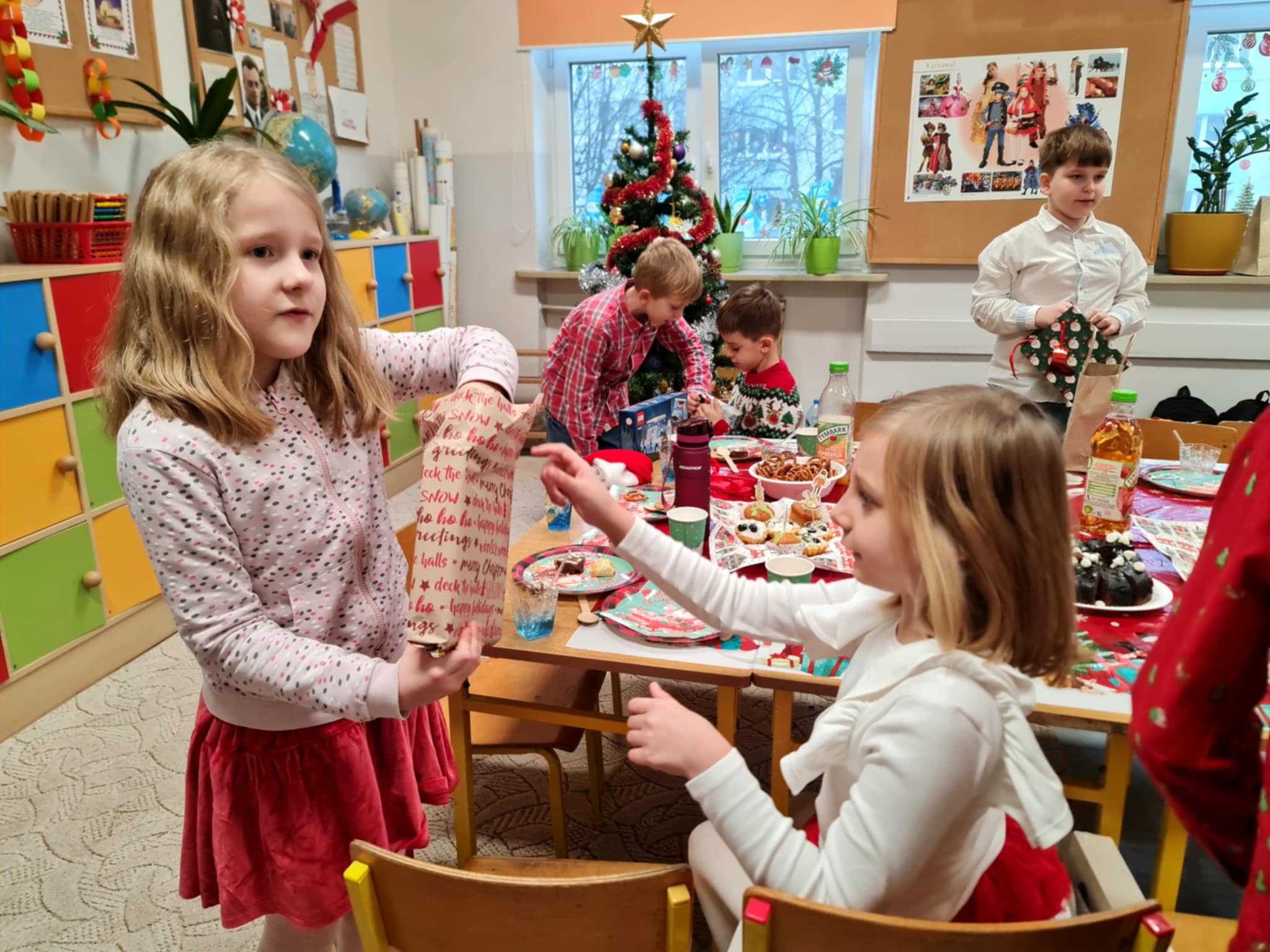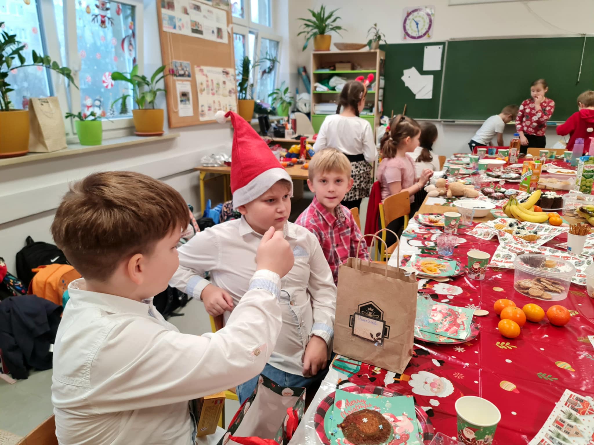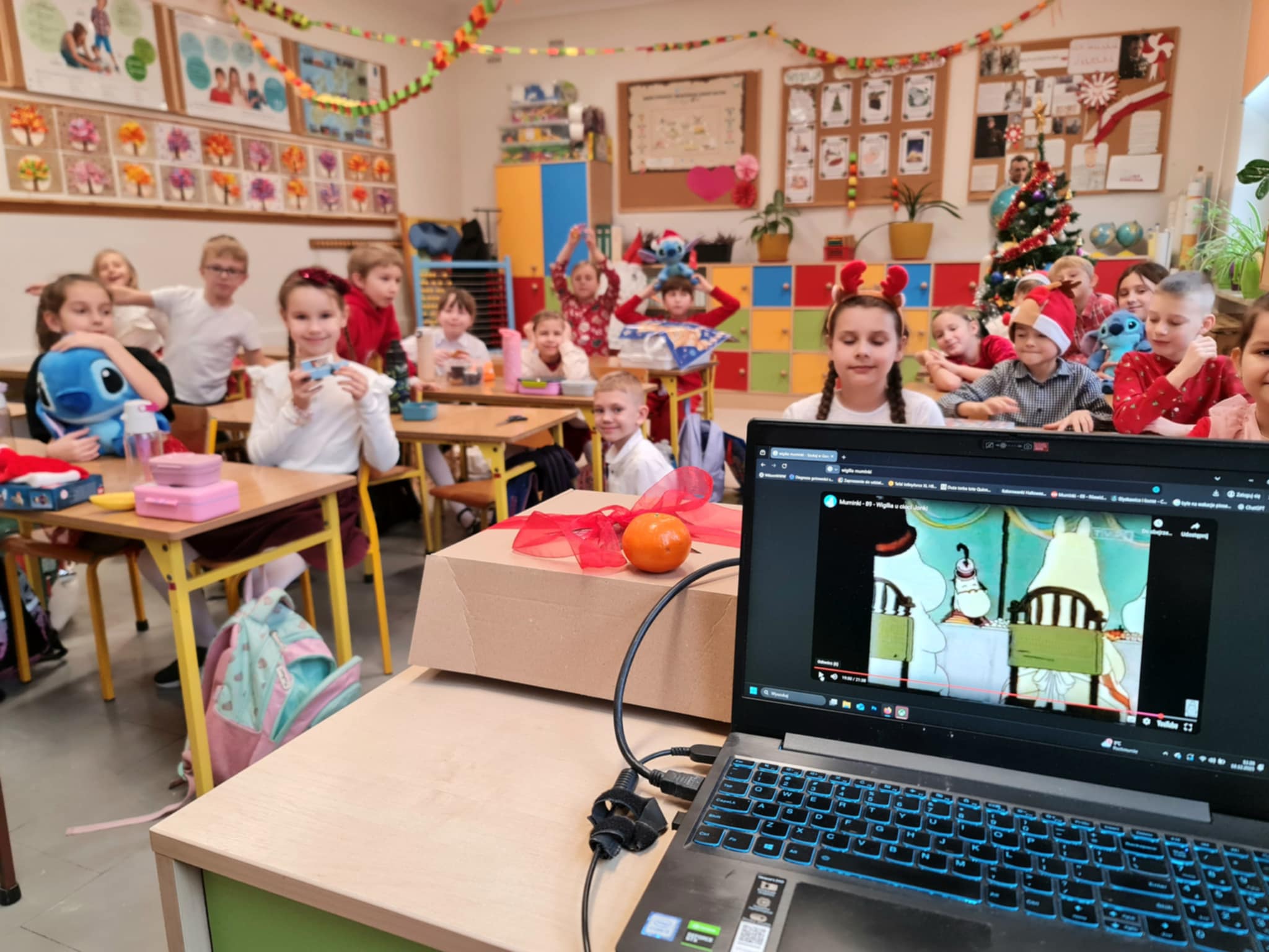 W trakcie Wigilii nie zabrakło również wspólnego kolędowania, które dodatkowo podkreśliło magiczny charakter tego dnia. Na zakończenie uczniowie obejrzeli odcinek swojej ulubionej klasowej bajki - "Muminki" - pt.: "Wigilia u Ciotki Jonki”.