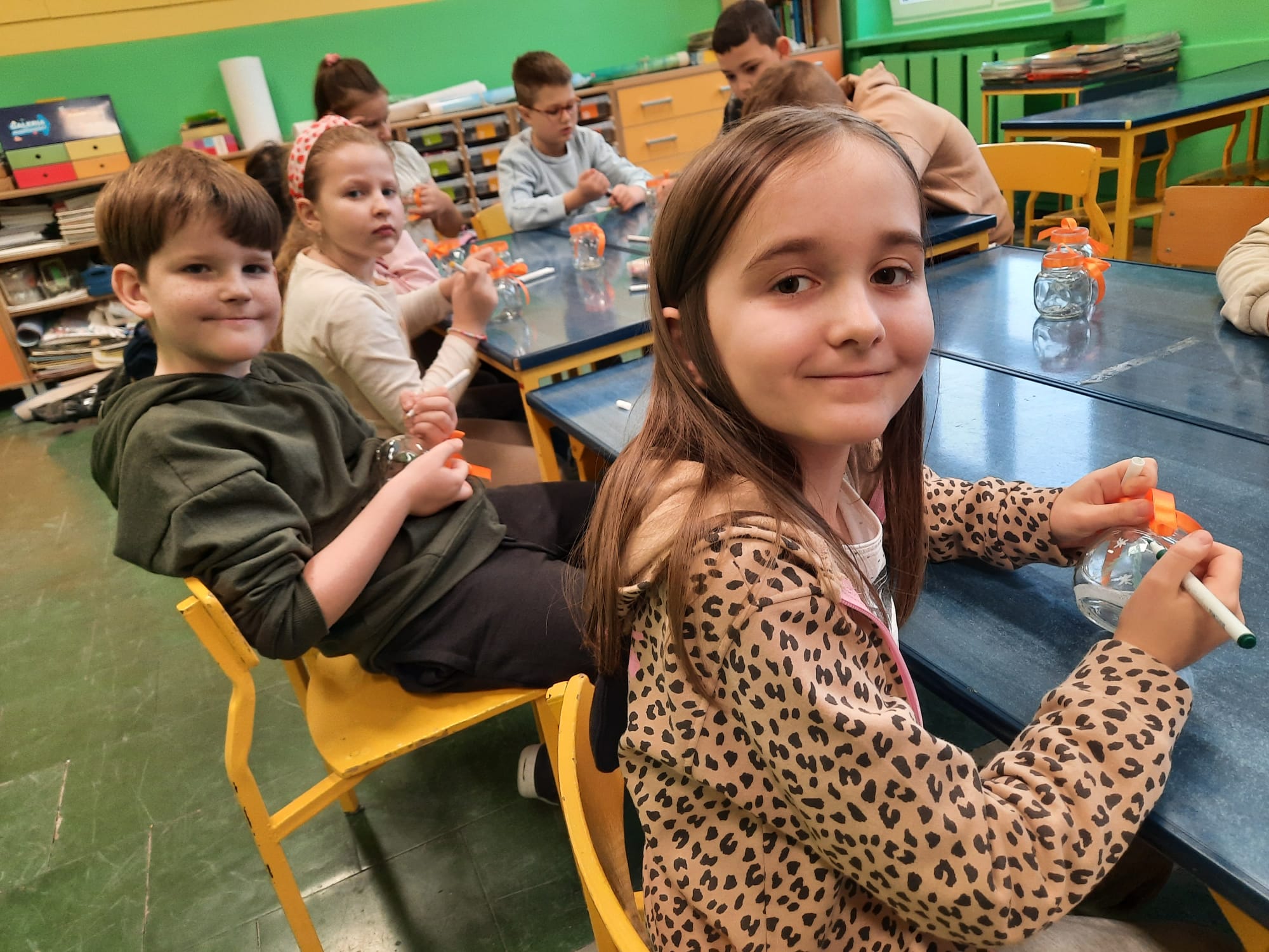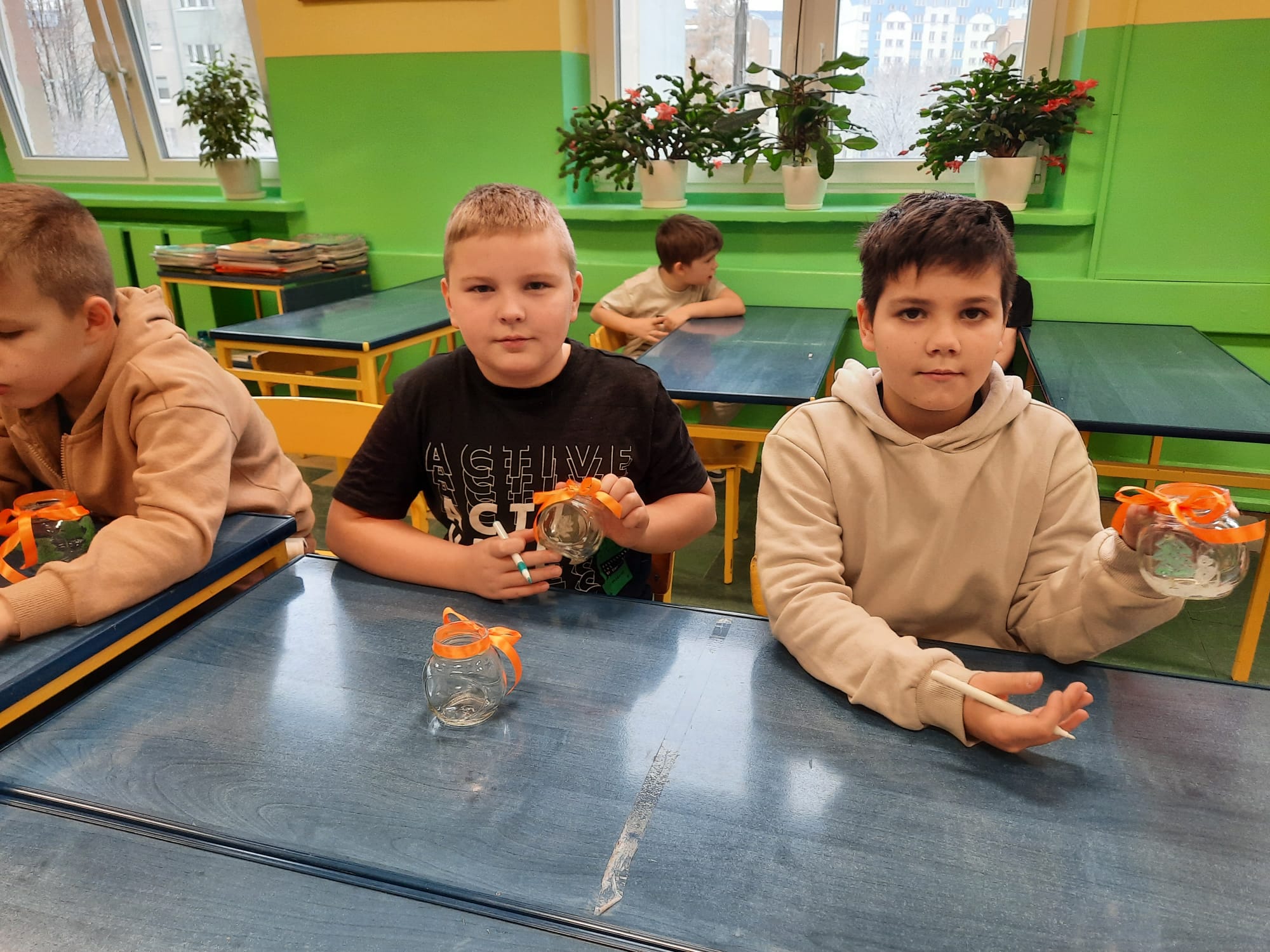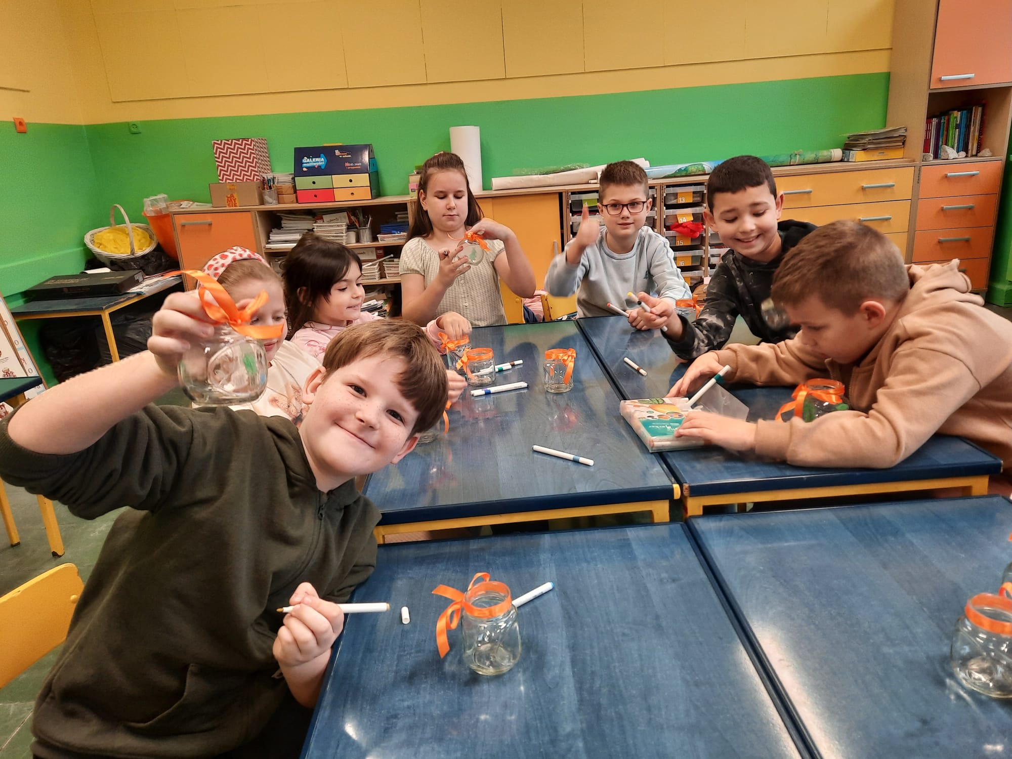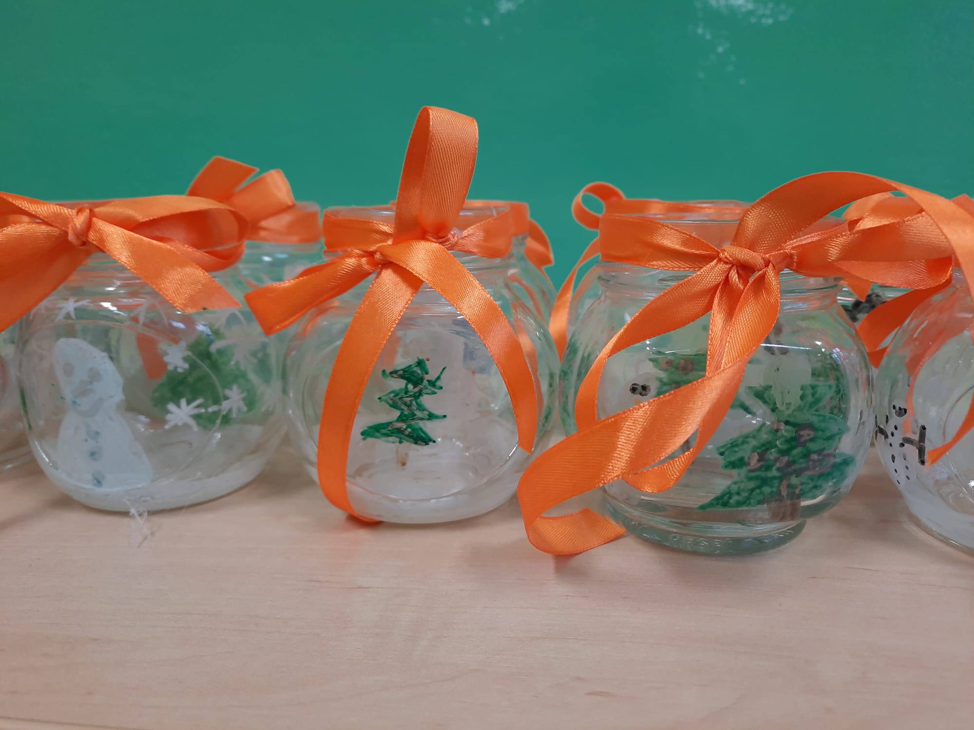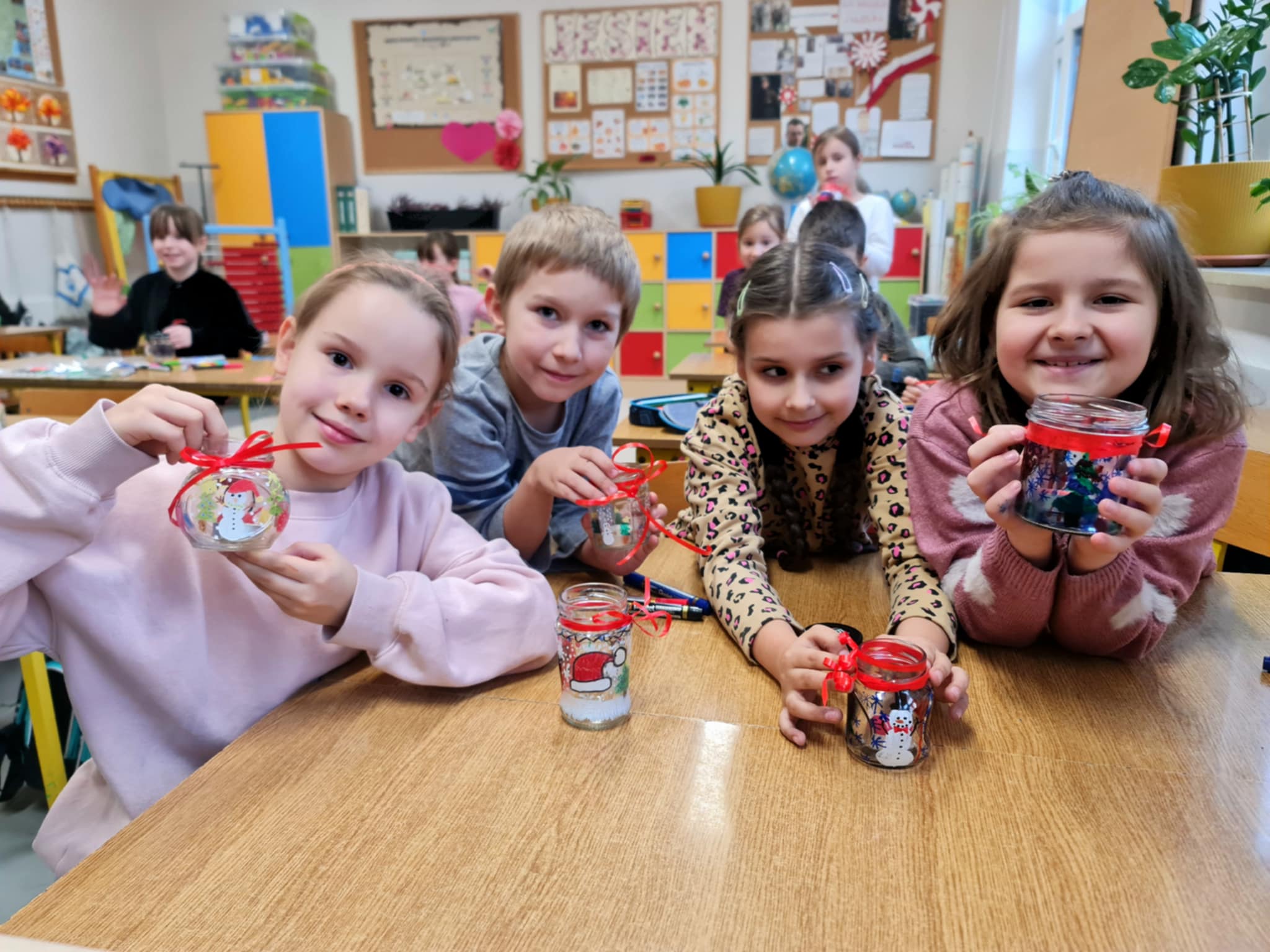 Uczniowie klasy 2b i 2c wykonali autorskie, świąteczne świeczniki.