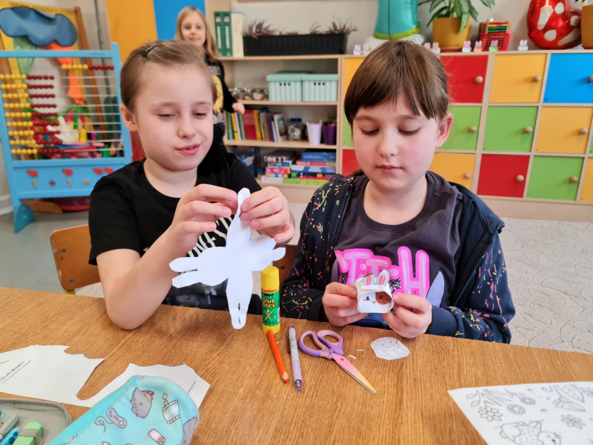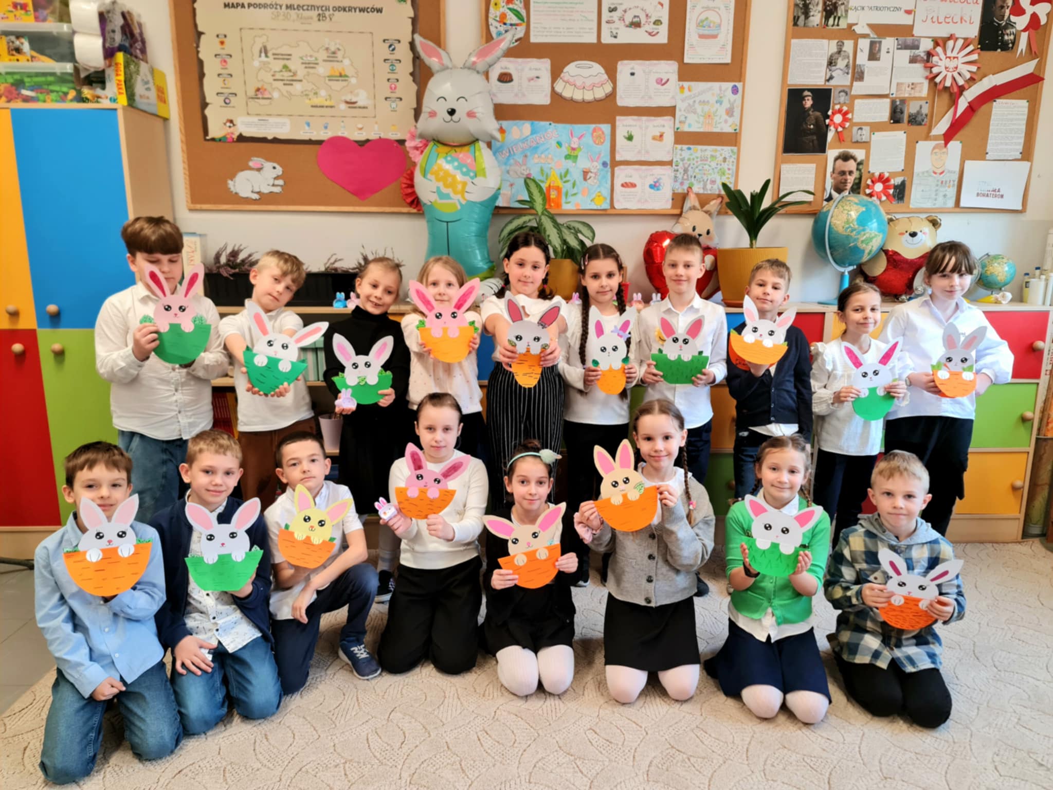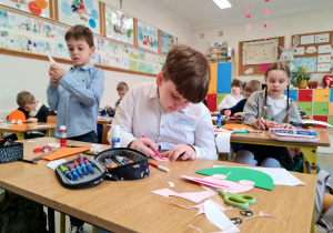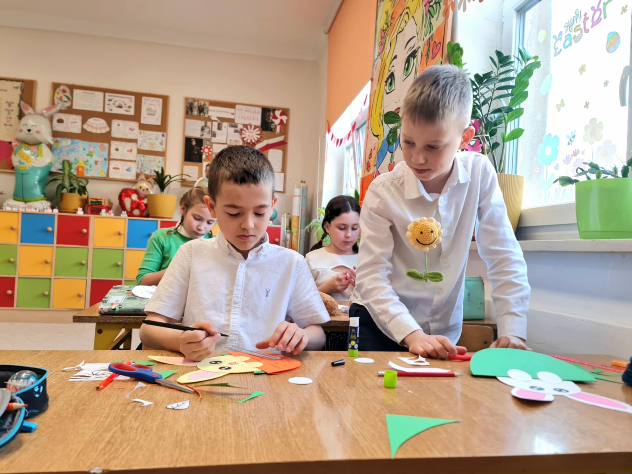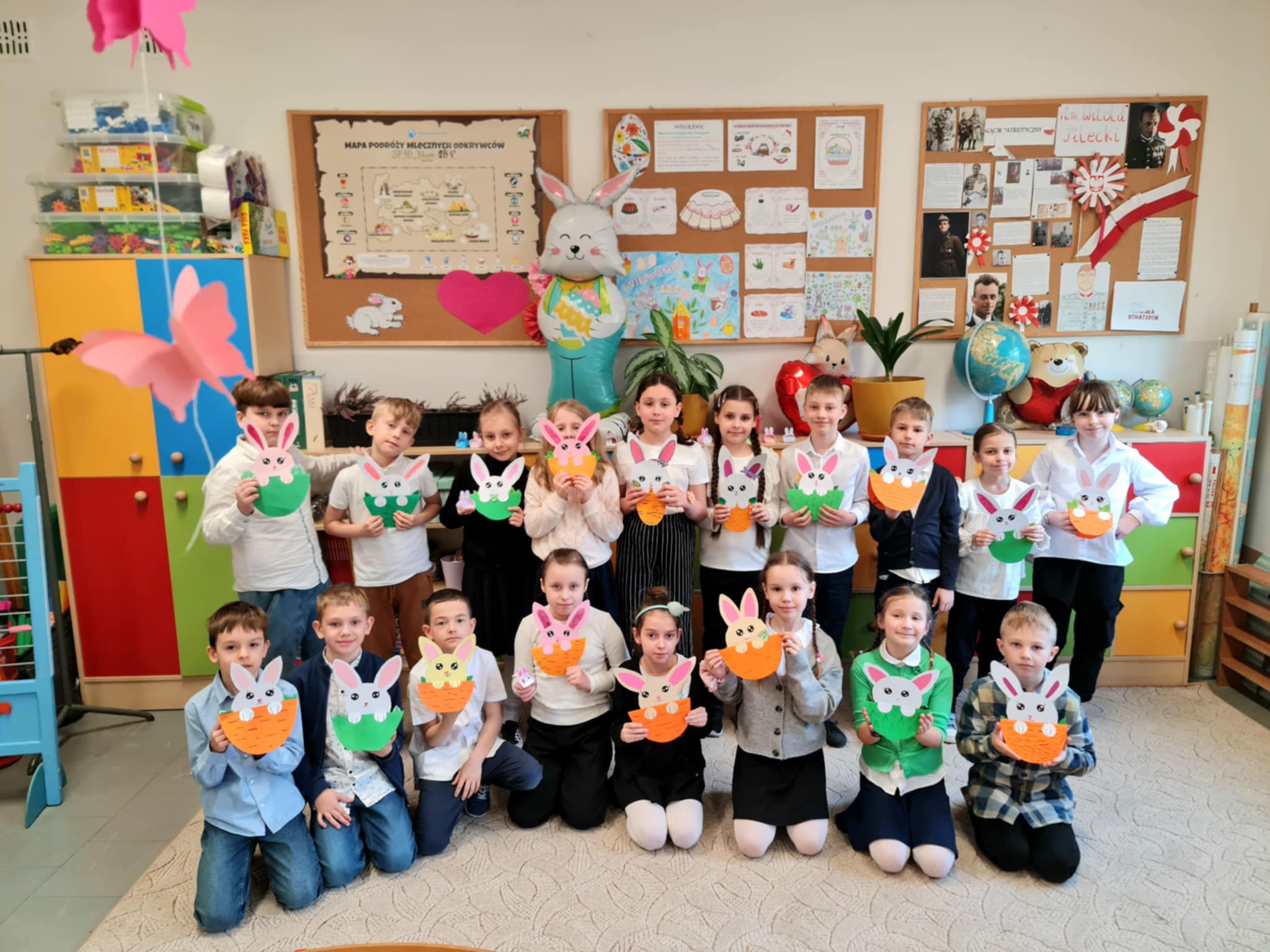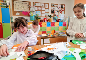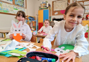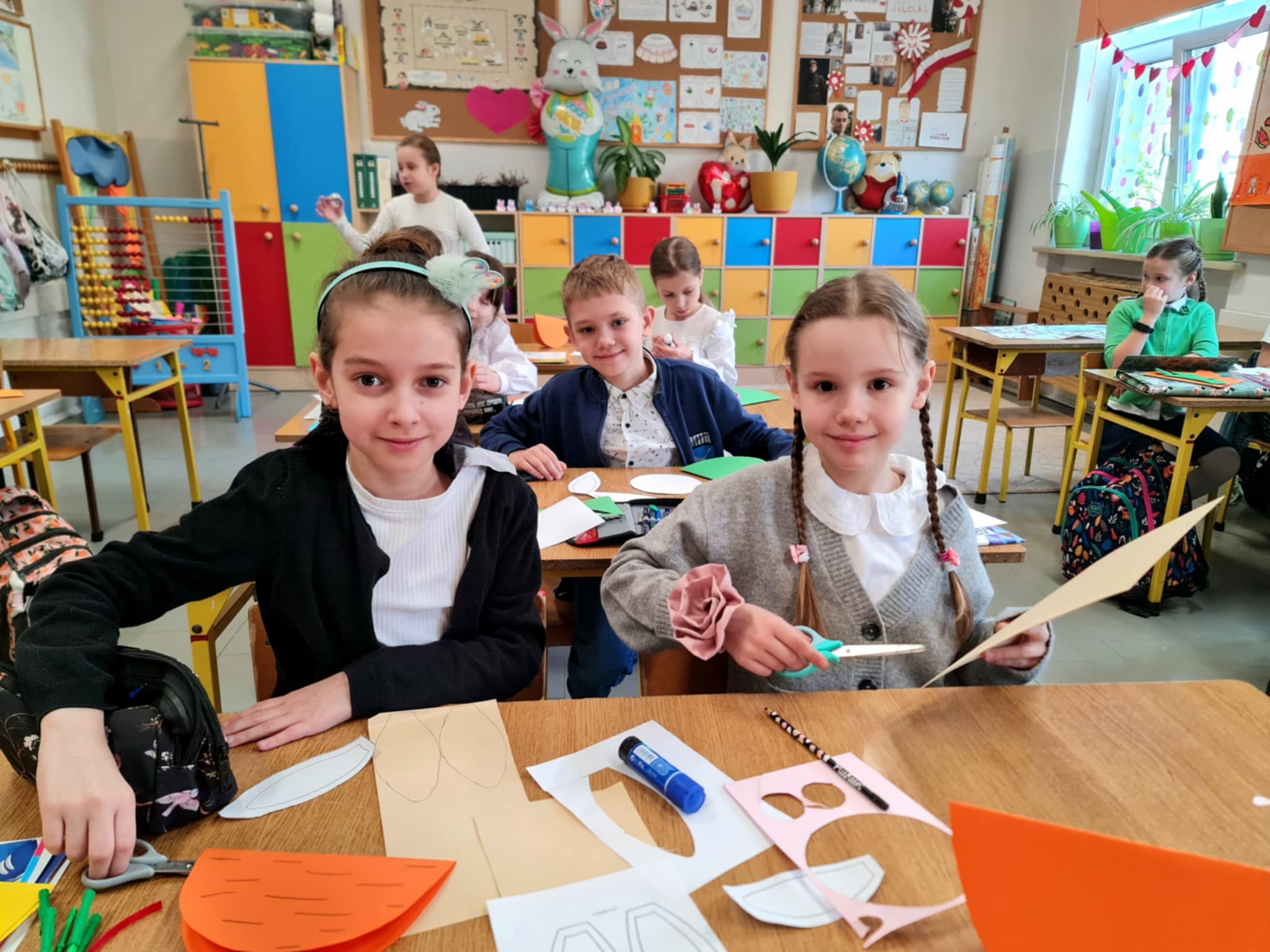 W klasie 2b rozpoczęły się przygotowania do Świąt Wielkanocnych. Podczas zajęć techniczno-plastycznych uczniowie wykonywali różnorodne dekoracje świąteczne. Powstały papierowe króliczki, trójwymiarowe koszyczki wielkanocne oraz urocze zajączki z ukrytymi w środku życzeniami.