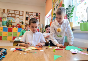 Dzieci z dużym zaangażowaniem i starannością pracowały nad swoimi pracami, wykazując się pomysłowością oraz dbałością o szczegóły.